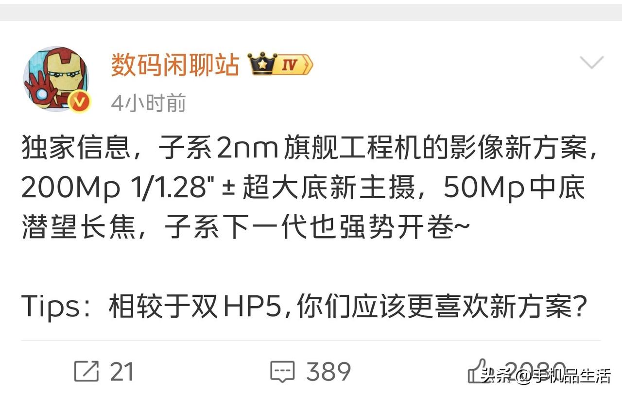曝红米K100 Pro Max后置2亿主摄+5000万潜望长焦 今日,知名数码博主“数码闲聊站”爆料了一条独家信息。 据爆料,子系2nm旗舰工程机的影像新方案,200Mp 1/1.28"±超大底新主摄,50Mp中底潜望长焦,子系下一代也强势开卷~ 据猜测,该博主所提到的新机或为小米子系列红米旗下的K100 Pro Max。该机后置2亿像素的超大底主摄+5000万像素的潜望长焦,也卷起影像来了。新机来了