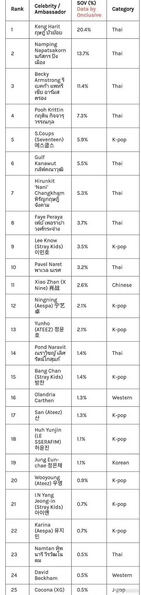 onclusive报道米兰时装周上最受热议的名人,肖战内娱第一且唯一上榜