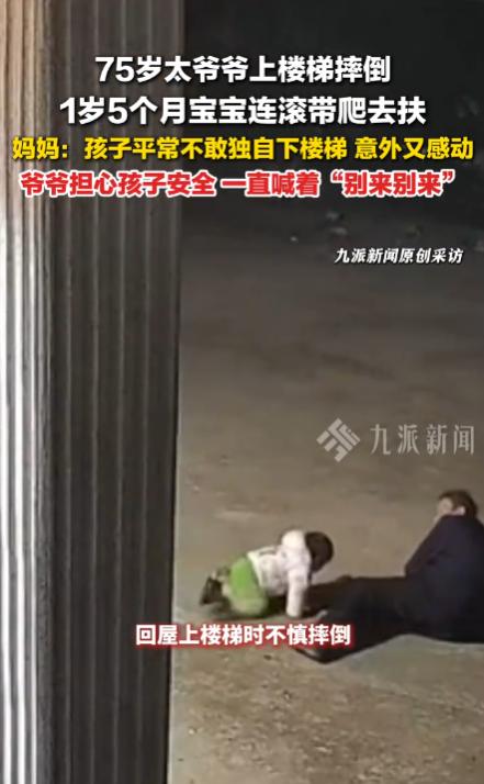 75岁太爷爷摔倒 1 岁5个月宝宝连滚带爬去扶!小宝宝平时连楼梯都不敢自己下,小小的身体,扑向老人的那一刻,血缘的温度胜过一切说教。这次下意识去扶太爷爷的举动真让人“意外又感动”。最后家人赶来扶起老人,太爷爷嘴里还念叨着孩子名字,心疼得不行。 想想现在社会,多少成年人看到老人摔倒都犹豫,怕被讹,可一个一岁多的娃,啥都不顾就冲上去。这让我想起自己带侄子的经历,他两岁时看我搬东西摔了,也跌跌撞撞来扶,虽然帮倒忙,但那份纯真戳心窝。 其实啊,生活里这种小事最珍贵。这真的是人性本善,婴幼儿纯真的情感本能,体现的爱心。