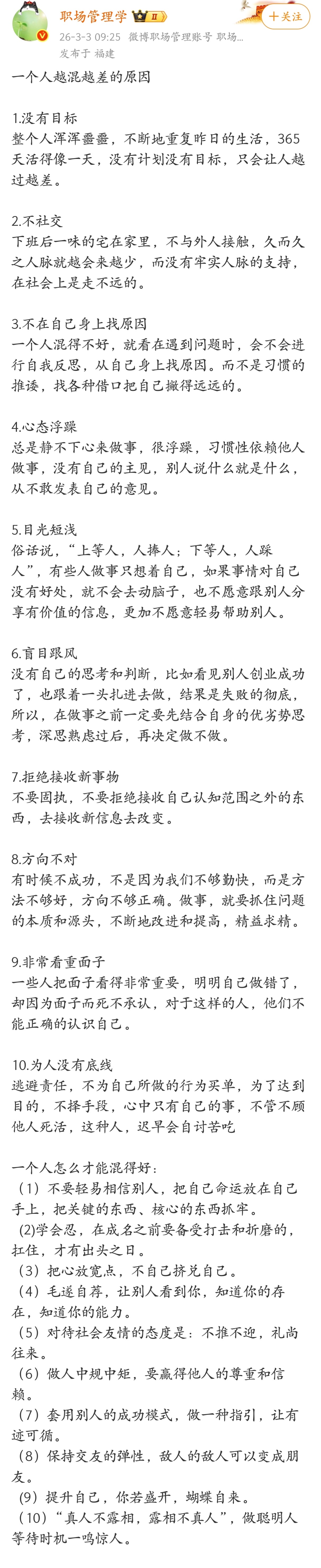 一个人越混越差的原因。
