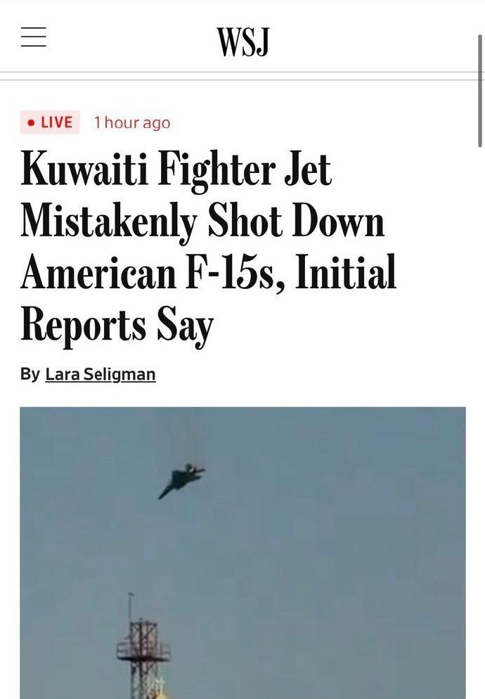该消息尚未得到官方证实,但如果确实如此的话,那么,击落这三架F-15E的科威特飞行员可能会成为科威特空军第一人,或者换一种说法,这名科威特飞行员一举击落了6名美军飞行员!