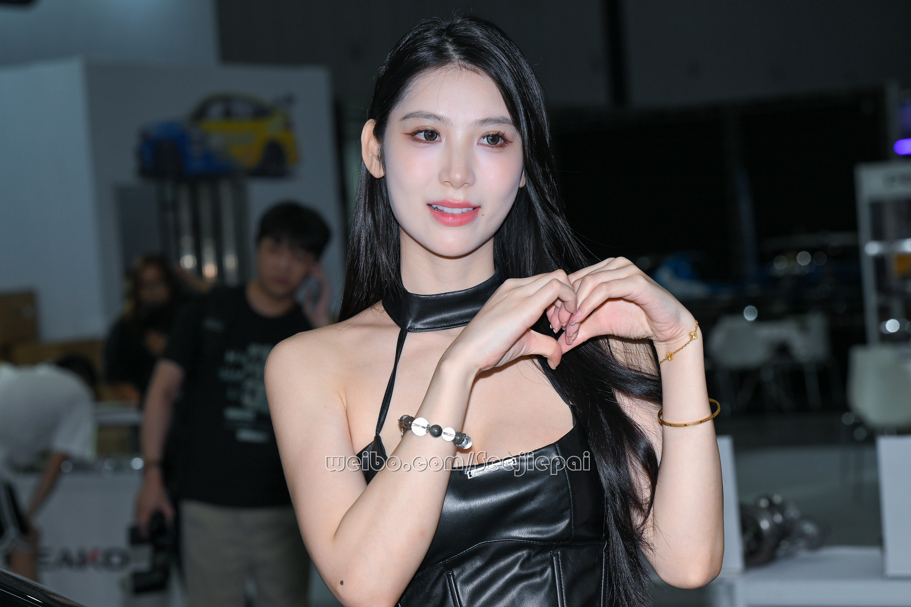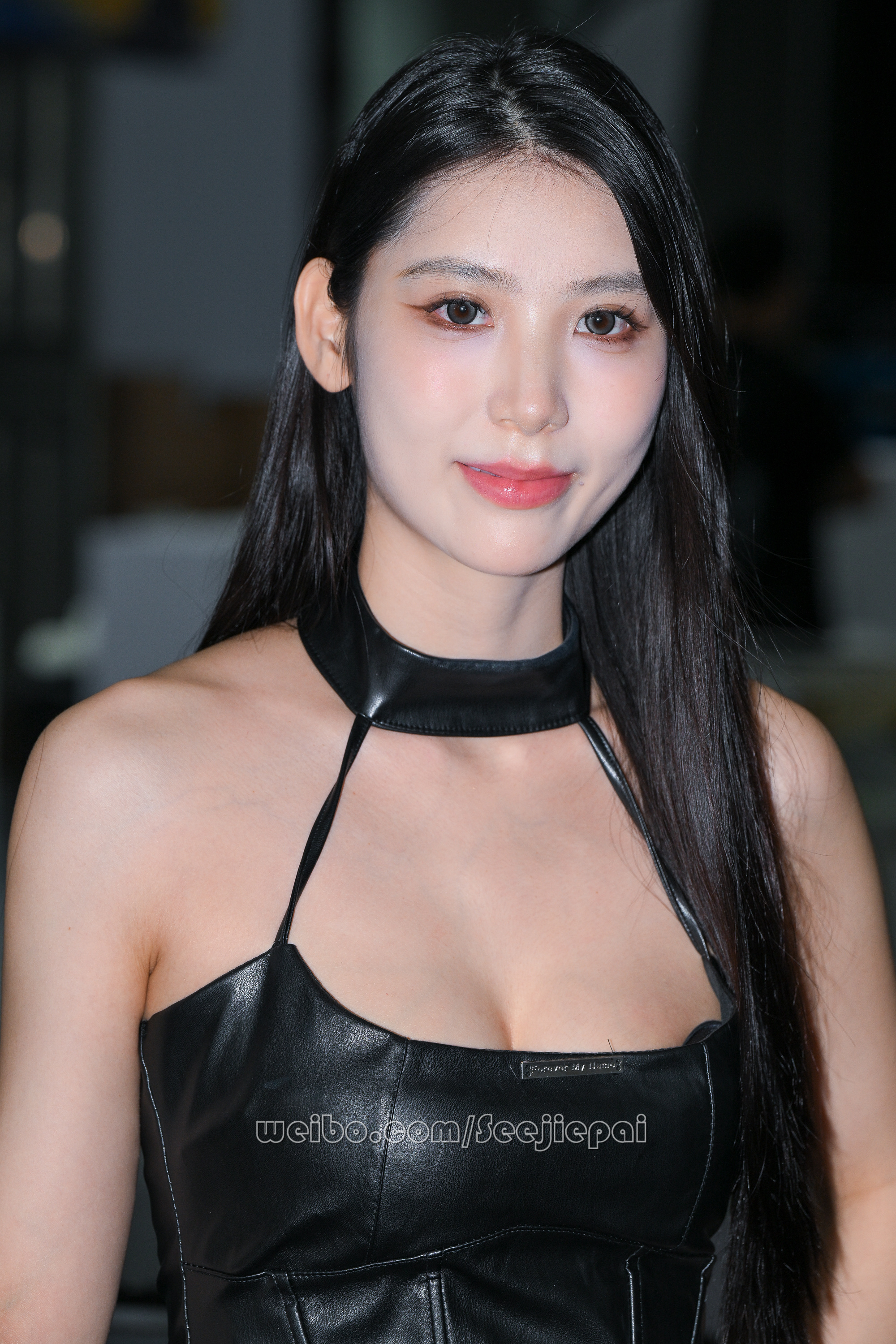 黑色皮裙甜美靓丽~~