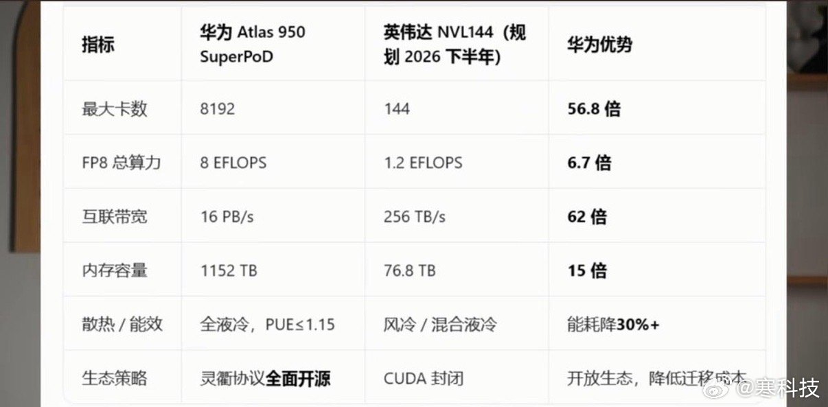 这次MWC华为算是给英伟达秀了一波肌肉,发布的超节点昇腾Atlas 950,居然全方位无死角地碾压英伟达,包括能效。