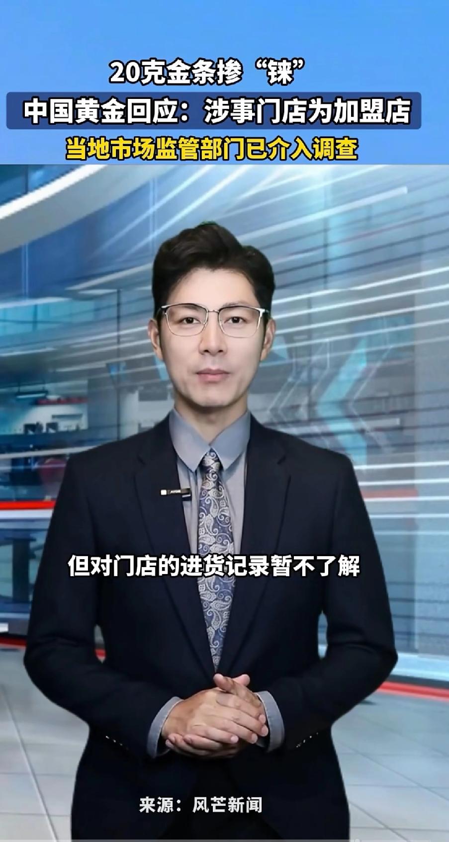 20克金条里面掺“铼”,中国黄金门店回应:涉事门店为加盟店。 市场监管部门已介入。 湖南岳阳王先生花19380元在中国黄金一家门店买了根20克金条,打算结婚打“三金”。 拿去加工时,一开始肉眼和剪开检查都没问题,到熔制环节师傅发现不对劲,仪器检测竟掺有“铼”粉。 铼是稀有金属,价格远低于黄金,能让黄金增重却降低纯度。 王先生按金条编号在官方服务号查不到信息,报警后门店也拿不出进货凭证。 中国黄金客服称涉事是加盟店,编码暂未录入系统,对进货情况不了解。目前市监局已介入。 其实类似事件不少,2024年宁波、绍兴、湘潭都有掺铼黄金被检测出。这让消费者对品牌金条纯度担忧,买黄金可得多留个心眼! 事业单位的员工犯了错一般都用“临时工”来开脱责任。中国黄金也学会了,一句加盟店就能推脱责任吗?客户是冲着中国黄金这个品牌去的,难道买黄金前先弄清楚是不是加盟店再决定购买。 品牌不应该对加盟店有监管责任吗?难道只负责挣加盟的钱,别的都不管了。最起码应该配合调查,出了掺假的事件,一句加盟店就把责任划分出去了吗。