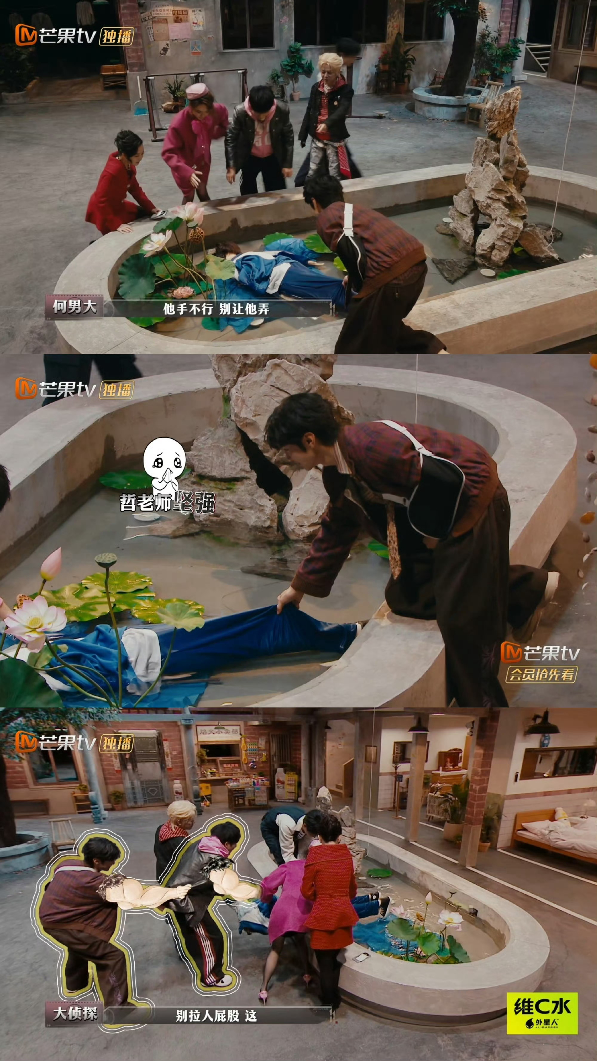 何老师照顾受伤的陈哲远 何老师真的很细心,陈哲远手受伤,大侦探和hi6都有照顾,