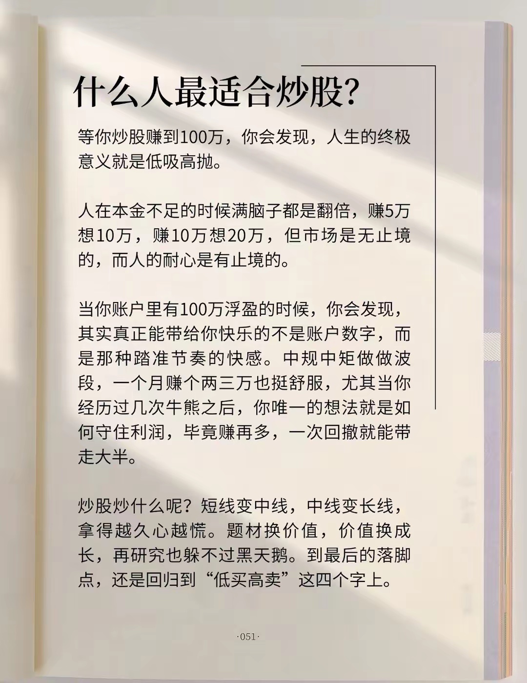 我赚大钱的办法是最愚蠢的笨办法,也是最容易的方法,就是按照规律等!比如,大牛市没