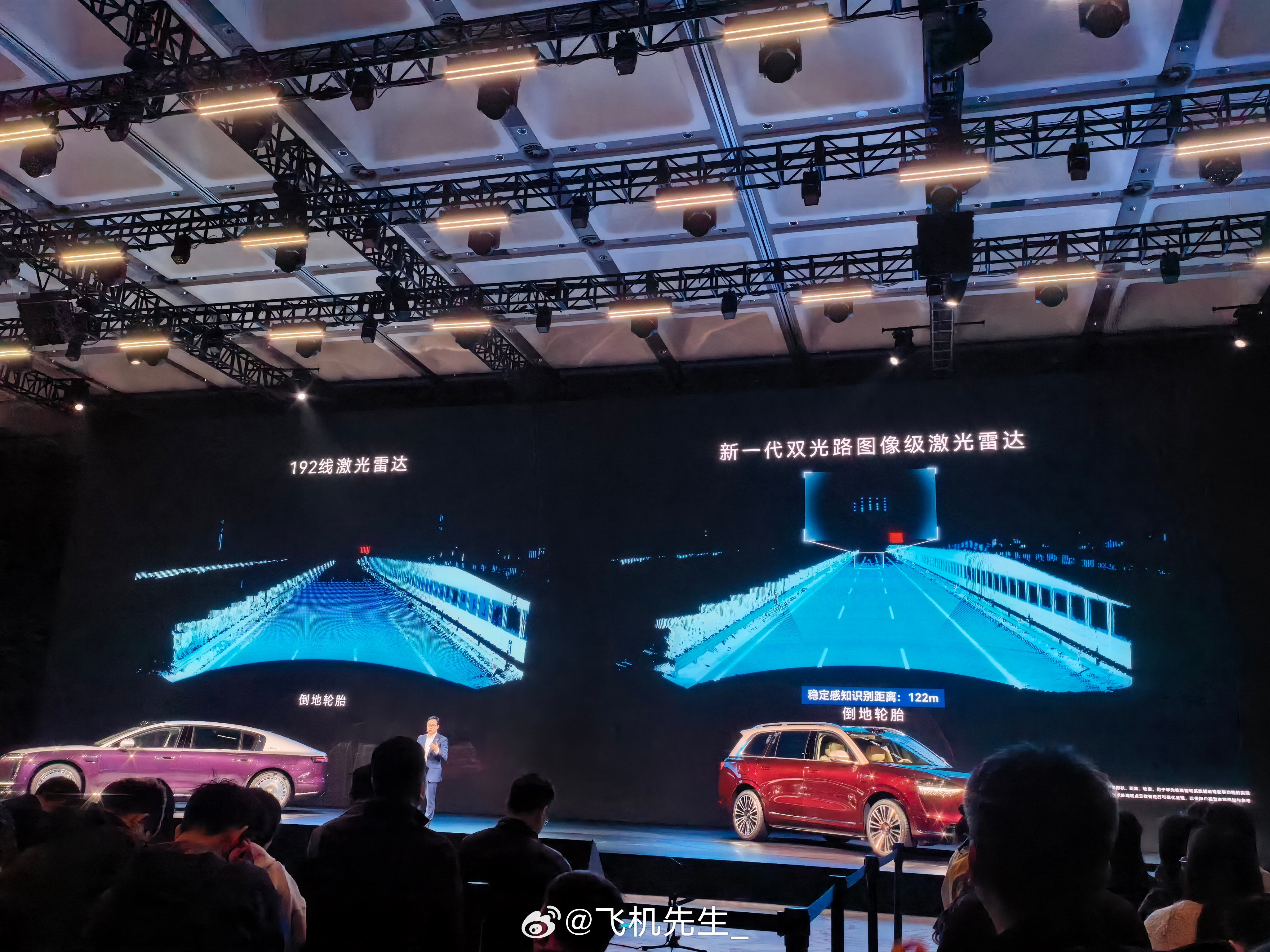 旗舰的代表有两款:一款是 520 线的来自速腾 EM4 ,现在极氪 9X 和智己 LS9 上用。一款华为双光路 896 线,问界M9 和 尊界 S800 上首发。