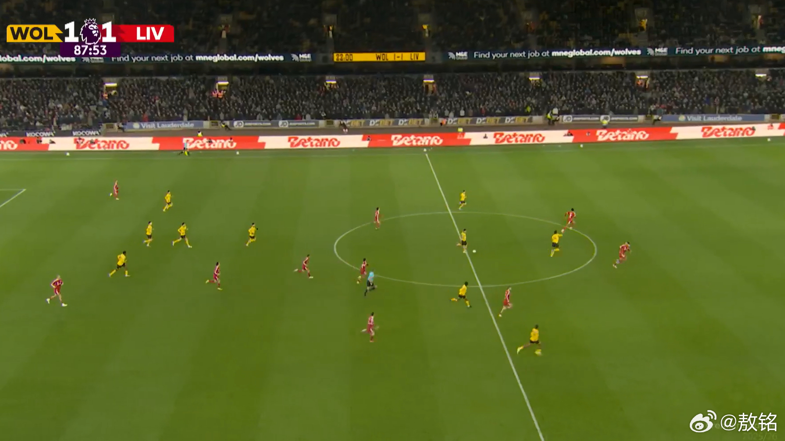 狼队2比1利物浦 从这张截图就可以看出,利物浦在比赛尾声的时候,阵型是多么松散,即使是狼队,也能实现多打少的局面。如果安德烈机会把握更好一些,不用等到伤停补时,狼队就能领先。很多希望斯洛特立刻下课的利物浦球迷,可以拿这张图给那些斯洛特的辩护者看看。这就是现如今羸弱不堪的利物浦。我还是强调之前的观点,上赛季利物浦夺冠,一方面是阿森纳、曼城拉胯,自己的优点主要是踢的渣叔足球,斯洛特加了一点点微调而已。本赛季利物浦开始踢斯洛特足球,进攻没有体系,看着热闹,实则混乱。你如果3-1领先,2-0领先,对手伤停补时打进去一个,于事无补啊,对不对?前面分析了很多利物浦伤停补时被绝杀绝平的原因,补充一点,利物浦自己的进攻出问题了,不仅仅是防守。利物浦
