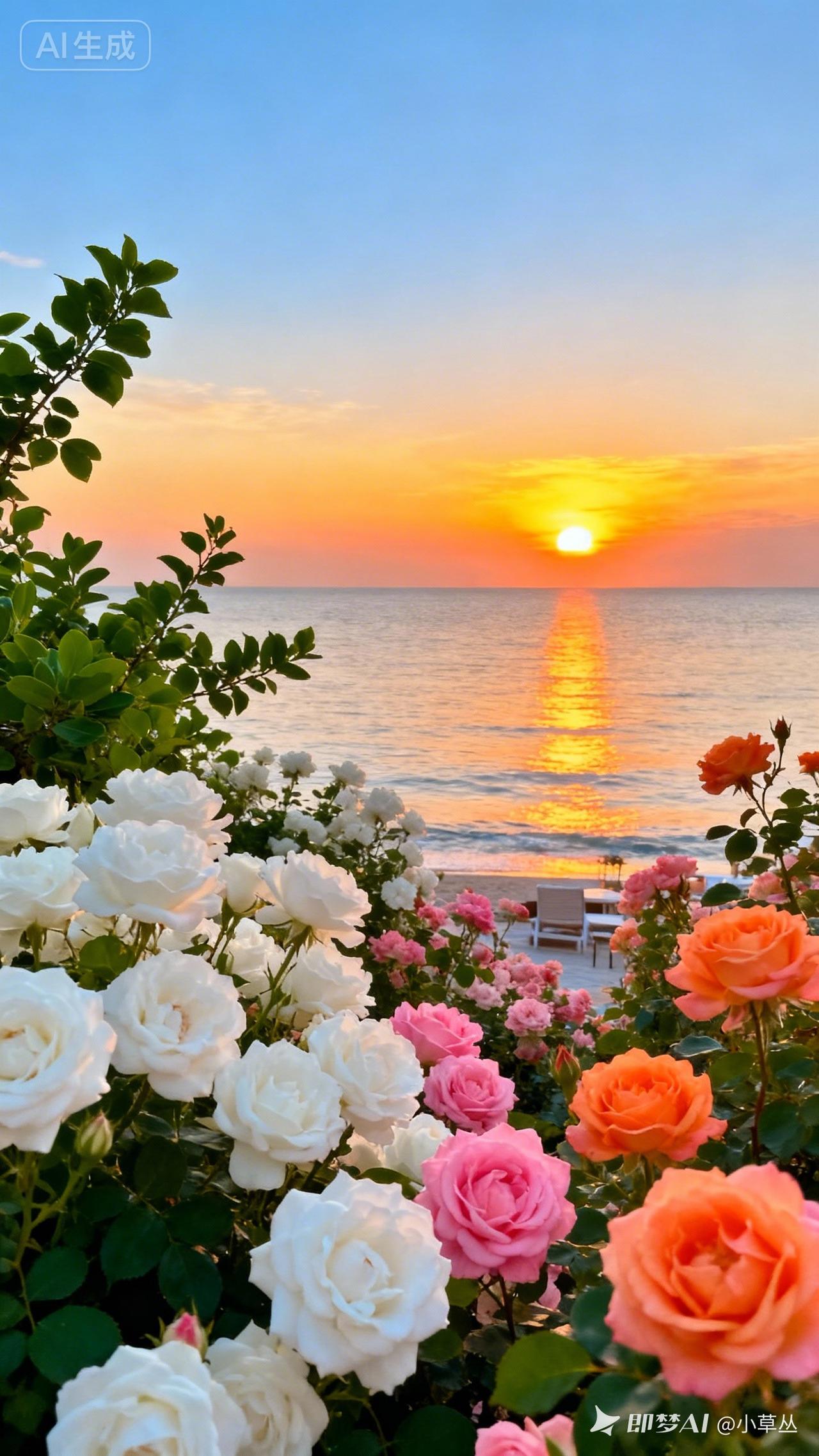 日落海滩,浪漫玫瑰,静享美好时光