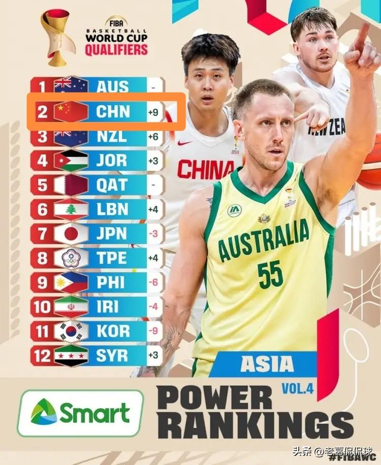伟大的中国男篮真是实至名归!今天FIBA官网公布了最新一期的世预赛亚太区的实力排行榜,让人感到无限兴奋和骄傲的是,中国男篮一跃升至第二,仅次于实力强大的澳大利亚男篮。 坦白说,中国男篮能够排名第二完全是实至名归,在最近两场世预赛预选赛中,中国男篮先后逆转击败日本男篮和中国台北男篮,取得两连胜,展现出了非常强的实力和阵容厚度。