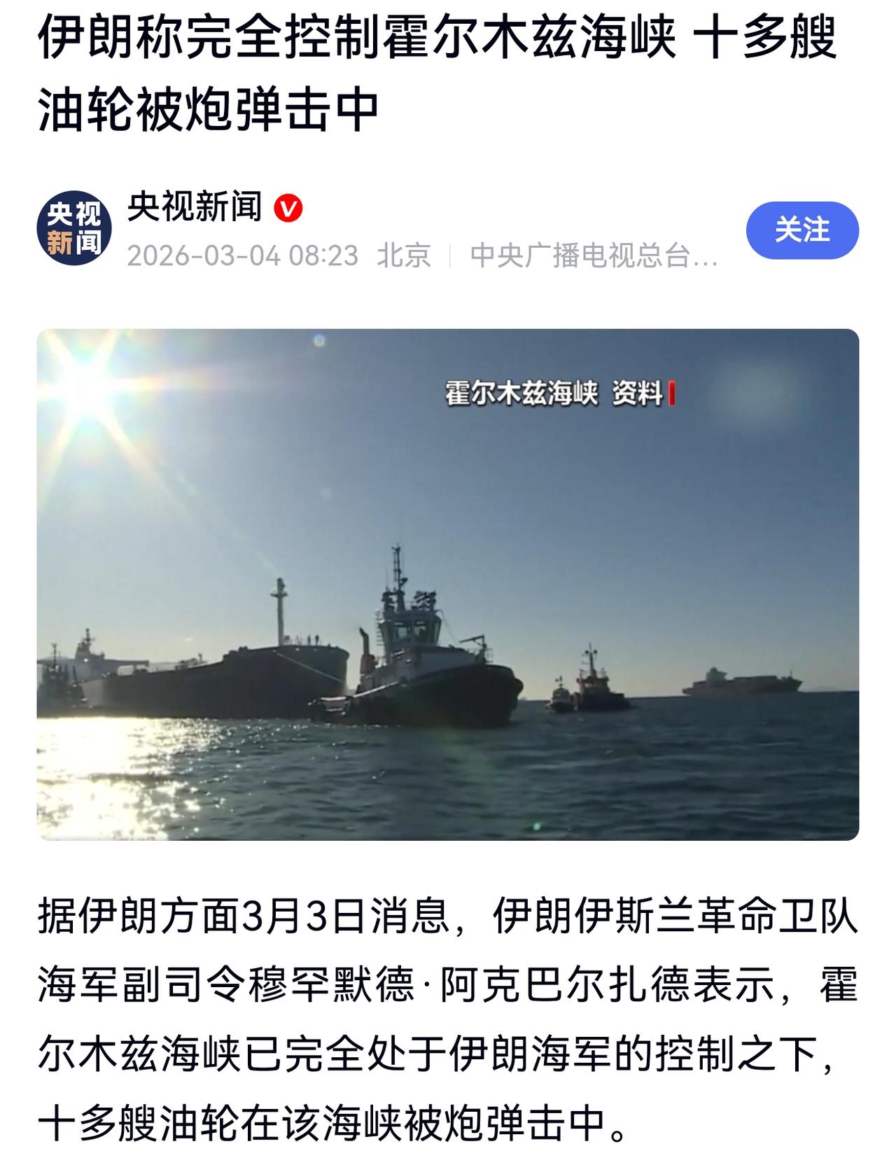 【伊朗封锁霍尔木兹海峡可能是下下之选】 伊朗目前对霍尔木兹海峡采取全面封锁策略,所有的油轮和舰船都不得通过,不管你是敌对国家还是友好国家,否则导弹和无人机格杀勿论。 这个意思很明白,就像俄罗斯人说的那句话:俄罗斯都过不下去了,还要世界干什么! 说句实在话,伊朗的做法实在是下下之选,这样做的坏处就是可能把与霍尔木兹海峡有利益攸关的中立甚至同情伊朗的国家推向了反面,让真心想帮他的国家也师出无名。 毕竟根据国际公约,霍尔木兹海峡是一条自由通行水道,任何国家包括伊朗都无权封锁。 波斯湾的原油运不出来,可能最受伤的还是中东那些阿拉伯国家,搞不好阿拉伯的那些王爷们会彻底倒向美以,虽然出不了力,但王爷们的钱是不缺的,出钱让美以派地面部队控制霍尔姆斯海峡周边区域,那伊朗的处境可能就更艰难了。 伊朗本来国内的情况就是暗流涌动,外部实质支持伊朗的国家又是寥寥无几,这个世界本来雪中送炭的就不多,落井下石的却不少。 说来说去,对伊朗的担心不禁又多了几分! 以上。 记录我的2026