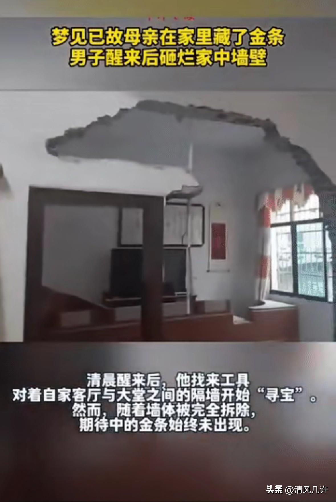 “太离谱了”一男子睡觉的时候做了一个梦,梦到去世的母亲在家里藏了金条,醒来后他把家里的墙给砸了。 这件真实发生在江西的小事,没有夸张的情节,全是普通人被生活重担与思念情绪裹挟的真实状态。男子的母亲已经离世多年,他独自承担着家庭开支与房贷压力,日常奔波在生计里,很少有机会直面内心对母亲的怀念。 长期的生活疲惫与对亲人的牵挂交织在一起,最终以一场格外清晰的梦境彻底释放出来。梦境里母亲的模样和话语都格外真切,反复提及家中墙体藏有留给她的物品,这样的画面让他醒来后久久无法平静,他固执地相信这是母亲对自己的牵挂与指引。 他没有和家人商量,也没有理性判断梦境与现实的区别,生活的压力让他迫切想要抓住能改变现状的可能,母亲在梦境里的叮嘱,成了他当下最坚定的信念。 他翻出家中闲置的锤子与凿子,径直走向客厅与大堂之间的墙体,这面墙是母亲生前经常停留的地方,他认定母亲所说的藏匿地点就在这里。他从墙面的角落开始敲击,一点点拆除墙体,过程中没有丝毫犹豫,满脑子都是母亲的身影,只想尽快找到梦里提及的东西。 邻居听到持续的敲击声响,上门询问情况,他只是简单回应几句,依旧专注于手中的动作。 家人发现后赶来劝阻,希望他能冷静下来,不要因为虚幻的梦境做出冲动的事,可他完全听不进去,他觉得母亲一生节俭又疼爱自己,绝不会用这样的方式开玩笑。 墙体被一点点砸开,砖块与水泥散落得到处都是,家中的环境变得一片狼藉,他依旧没有停下手中的工具,哪怕手臂已经发酸,也始终抱着找到希望的念头。 整整大半天的拆除工作结束,整面墙体被彻底砸毁,他蹲在废墟里反复翻找,从碎砖到水泥块,每一处角落都仔细查看,始终没有看到金条的影子。巨大的失落感瞬间包裹住他,他瘫坐在地上,这一刻才清醒意识到自己的行为有多荒唐。 家人没有继续指责,只是陪着他一起清理现场,在整理墙体夹层的时候,家人意外发现一个锈迹斑斑的铁盒,盒子被严密包裹在防潮材料里,显然已经藏匿了很久。 他颤抖着打开铁盒,里面没有任何贵重财物,只有母亲生前攒下的零散存款、他儿时的奖状和几张泛黄的家庭照片。 这些都是母亲生前精心珍藏的物品,每一件都承载着对家人的爱意与牵挂。他看着这些旧物,瞬间明白母亲的心意,母亲从未想过留下什么财富,只是把对他的爱悄悄藏在无人知晓的角落,这场因梦境引发的闹剧,让他彻底读懂了亲情的真正意义。 重新修缮墙体花费了他数万元积蓄,这笔开支进一步加重了他的生活压力,可他却没有丝毫抱怨。 这次经历让他放下了对一夜暴富的执念,也让他重新正视对母亲的思念。他开始懂得,母亲留下的最珍贵的遗产,从来不是金银财物,而是刻在日常里的牵挂,是面对困境时的精神支撑,是跨越生死也不曾改变的爱意。 事件在网络上传播后,引发大量网友的关注与讨论,大家没有一味嘲笑他的荒唐,更多人从他的经历里看到了成年人的无奈。 生活的压力常常让人迷失方向,对亲人的思念也会在不经意间转化成偏执的行动,这场看似离谱的举动,本质上是对亲情的依赖,是对温暖的渴望。网友们纷纷分享自己与亲人的相处故事,感慨亲情远比物质财富更值得珍惜。 男子后来把母亲留下的铁盒摆放在家中最显眼的位置,每次看到铁盒,都会提醒自己珍惜当下的生活,珍惜家人之间的陪伴。 他依旧过着平凡忙碌的日子,依旧要面对生活的各种压力,可他的心态已经完全不同,他不再渴求虚幻的财富,而是用心守护身边的亲情,认真过好每一天。 这场没有赢家的闹剧,最终以一场内心的觉醒收尾。 它让所有人看清,真正能支撑人走过困境的,从来不是意外的财富,而是血脉相连的牵挂,是藏在岁月里的爱意,是亲人留下的温暖与力量。平凡生活里最珍贵的东西,从来都不在墙壁的夹层里,而在人心的牵挂中。 各位读者你们怎么看?欢迎在评论区讨论。