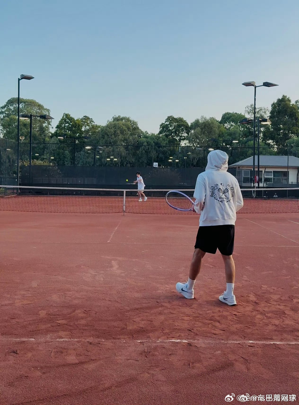 F1车手周冠宇晒出了和说唱天王周杰伦切磋网球技艺的wb,看样子两人不止在一种类型的场地有过交手哦