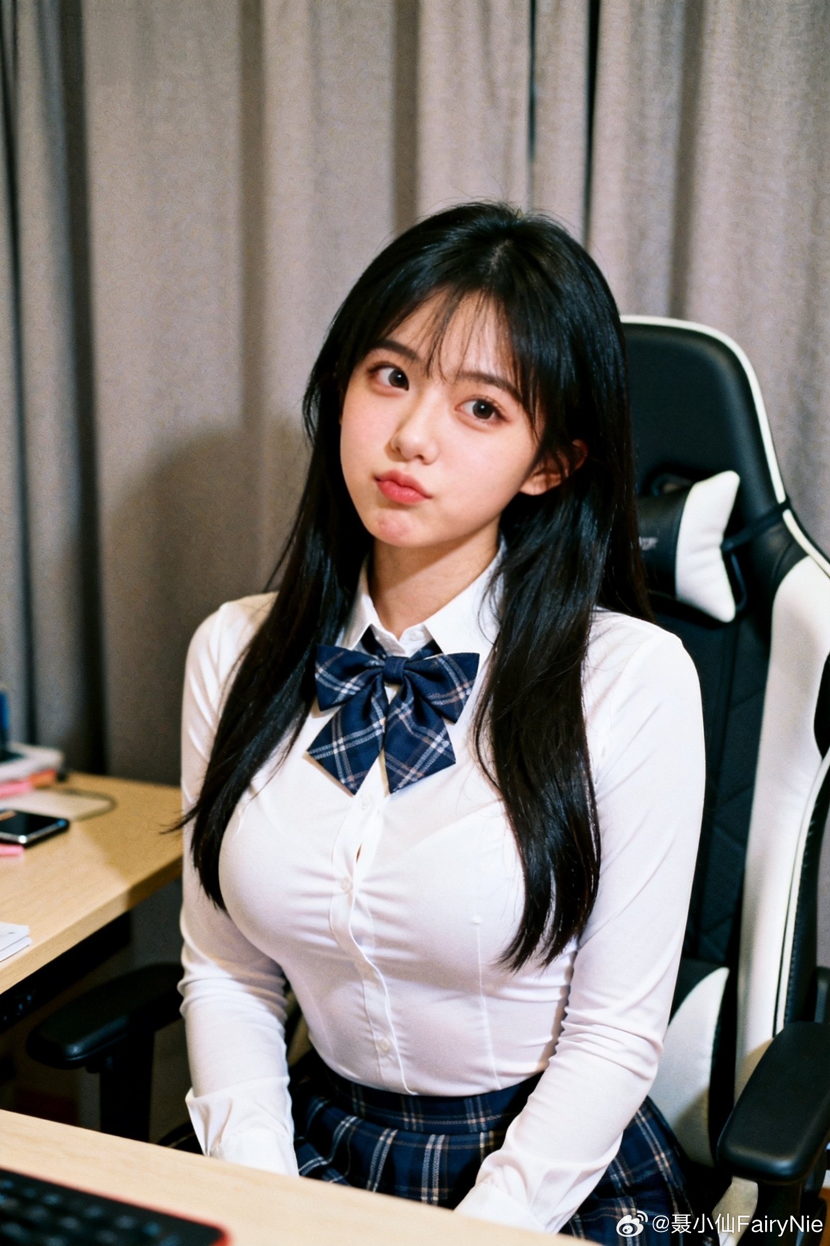 谁懂啊!校服照真的好有氛围感😊蓝色系不一定代表忧郁,还有可能是青春活力!聂小仙