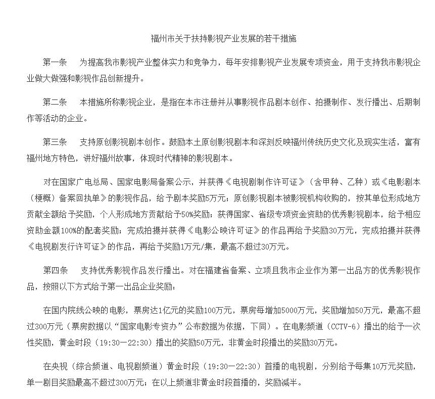 福州加快扶持影视产业发展:支持影视作品在我市取景拍摄!