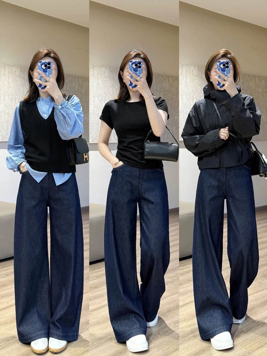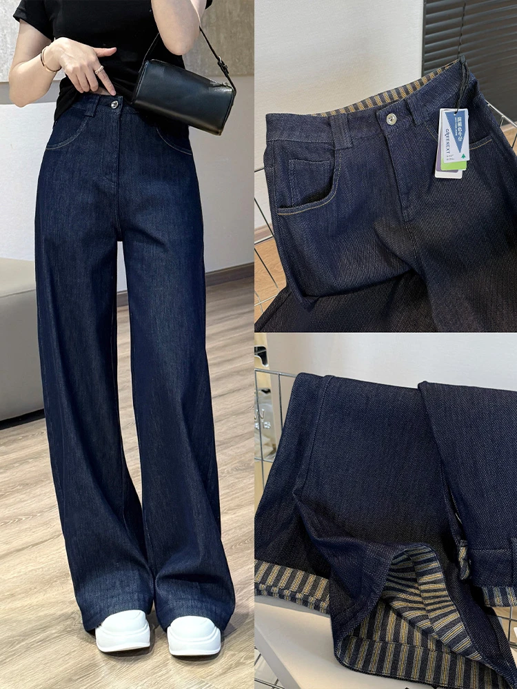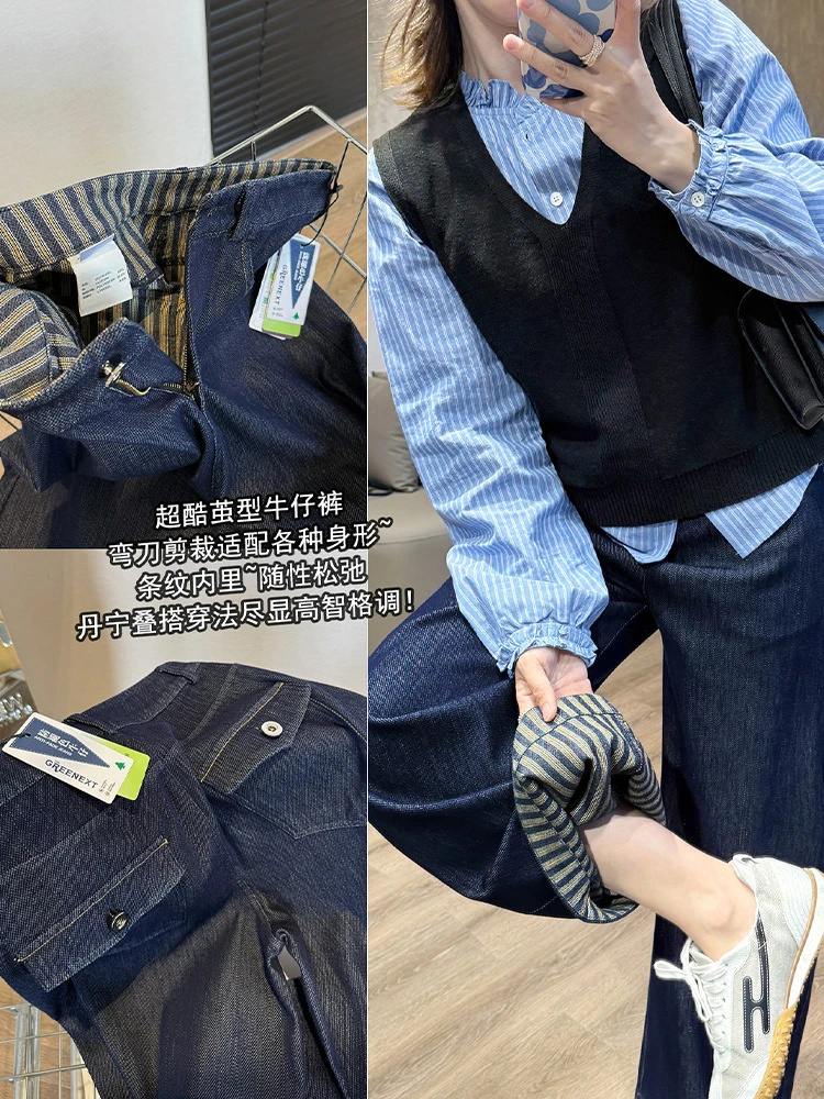 条纹底腔调牛仔裤👖防褪色高腰阔腿裤!
