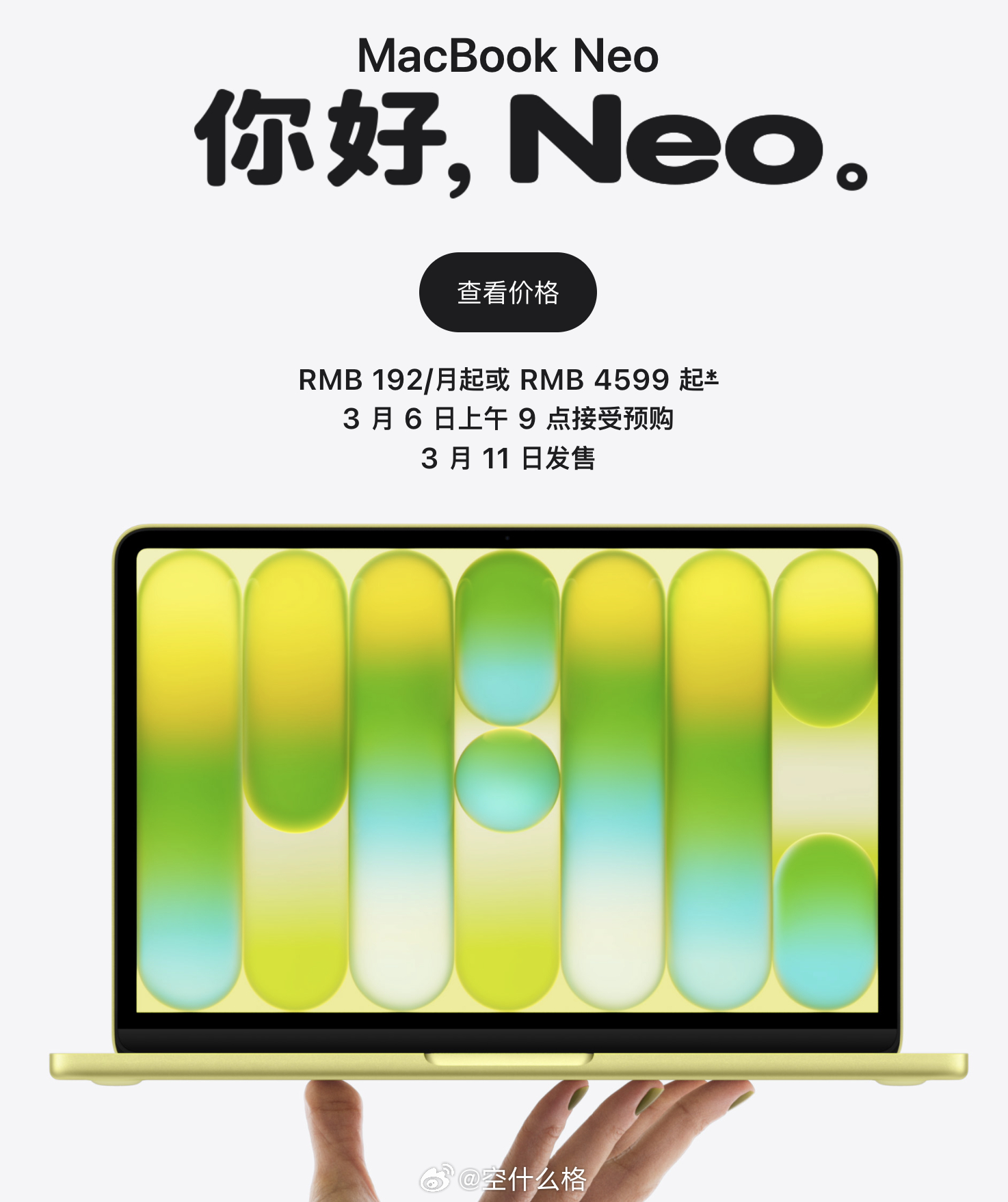 MacBook Neo 来了,A18 Pro 芯片 ,4599元起,祖传 8GB 内存.....