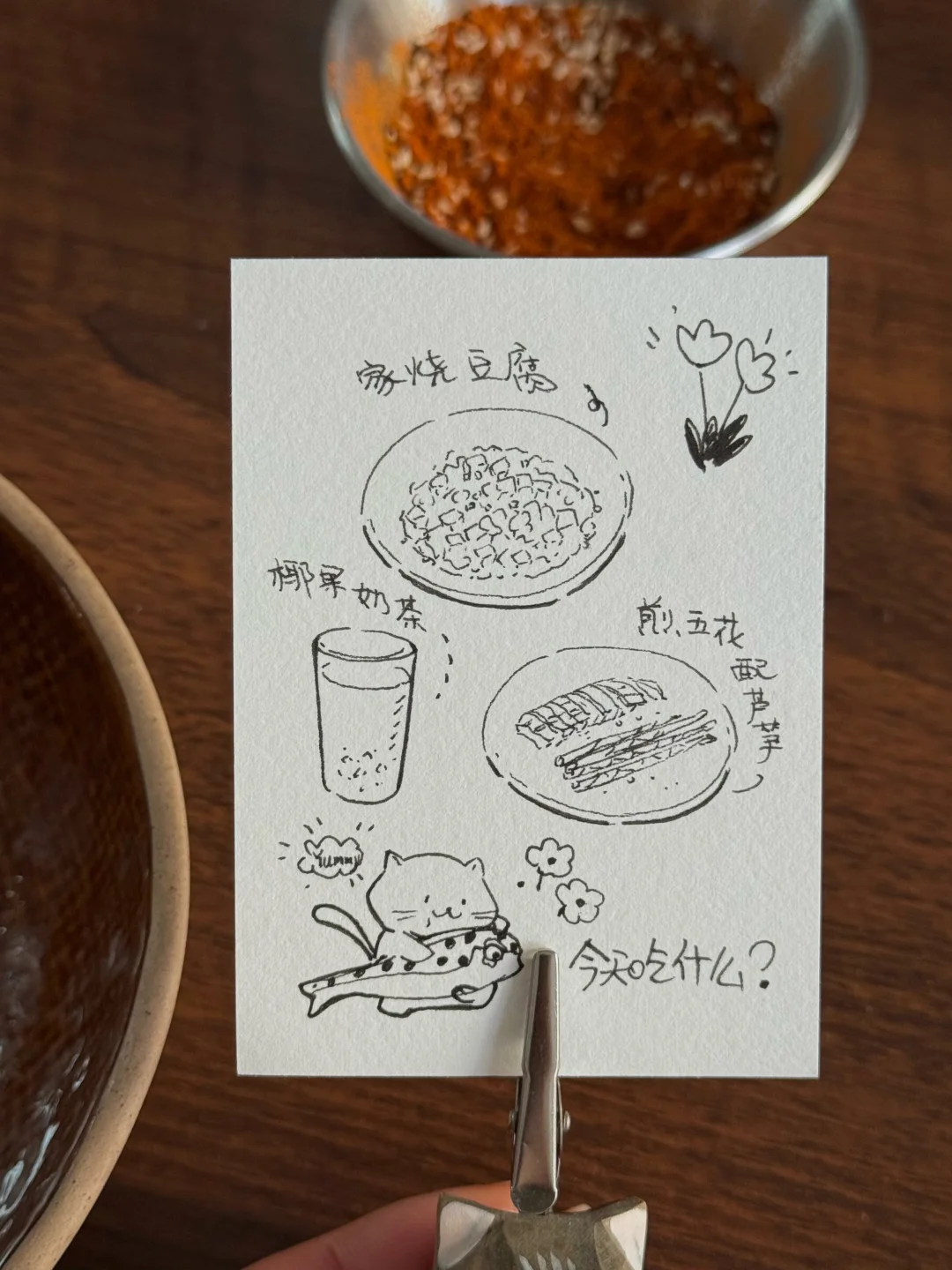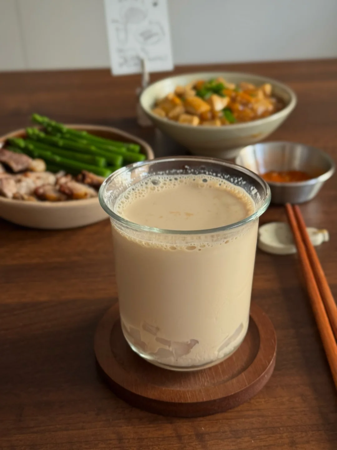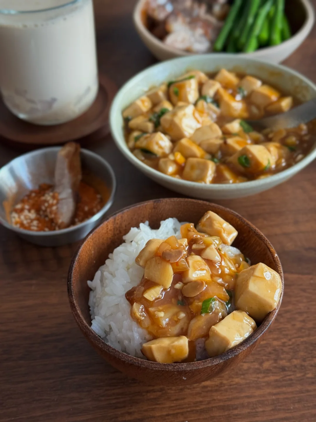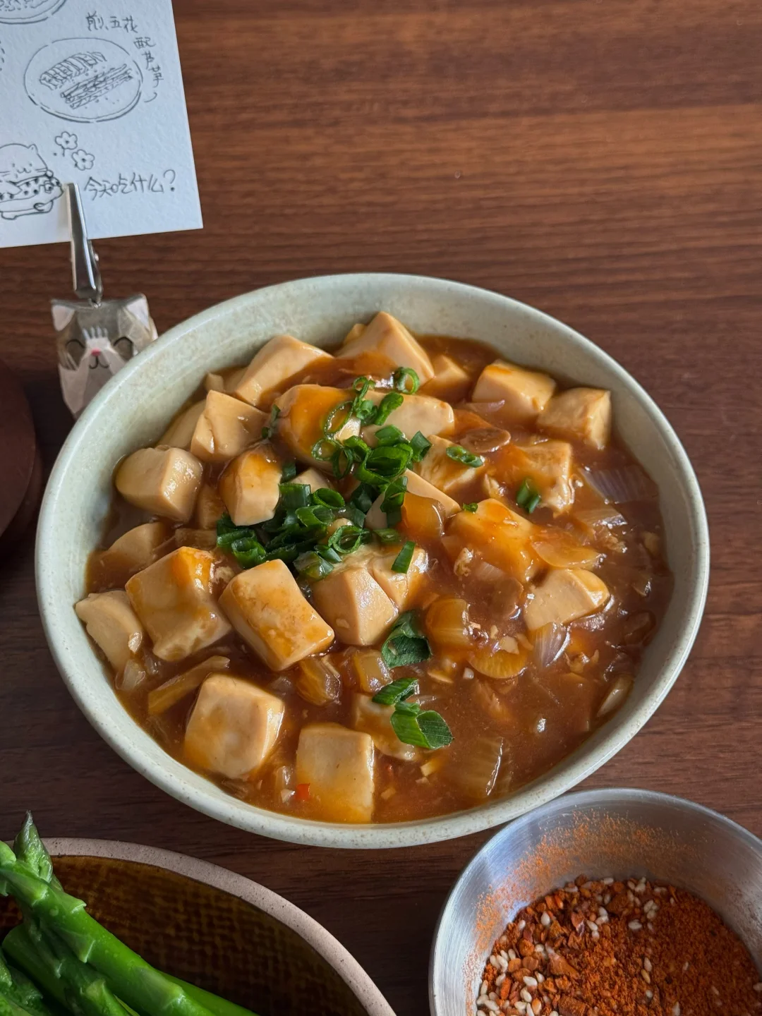 今日份餐桌清单🧾: 🥓焦香入味的煎五花肉+翠绿芦笋 🥢 滑溜溜的酱香豆腐(下饭神器!) 🍚 一碗热腾腾的白米饭 🥤 橙香椰果奶茶 简单的食材有不简单的幸福感,推荐豆腐这样吃,平时吃不了太辣,所以今天这个不是麻婆豆腐,今天的豆腐味道参考了部分酱香饼酱的调味,很好吃哦! 五花肉煎一煎,挑了一块瘦的,避免油脂过多,煎的表面较脆,蘸点烧烤粉就很香。 奶茶也是自制的呢!用的复合橙子香味的红茶包,有放一点冰糖,加牛奶和多多的椰果,甜甜的、香香的,超满足!