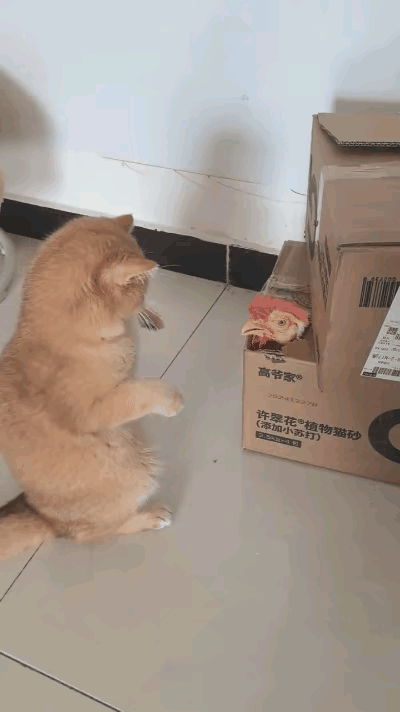 我家这小猫可真厉害!看见乡下亲戚寄来的箱子里钻出来一只大公鸡,立马就冲上去,扑过去咬人家脖子,那架势跟看见仇人一样。估计是把公鸡当成啥稀罕鸟了,非要跟人家较劲。你看看这小暴脾气,连亲戚送来的鸡都敢这么凶,这猫是不是也太霸道太厉害了?