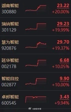 量化交易捕捉到智能这两个字之后,把今天名字当中带智能的所有股票,80%几乎都拉涨停了。
