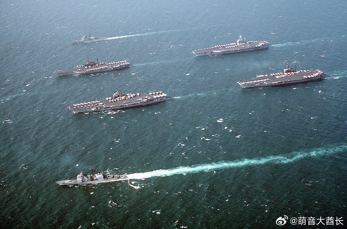 1990年那会儿,出动了6艘航母,这就是难得的那张四艘航母能凑一块儿拍全家福,那叫霸气。