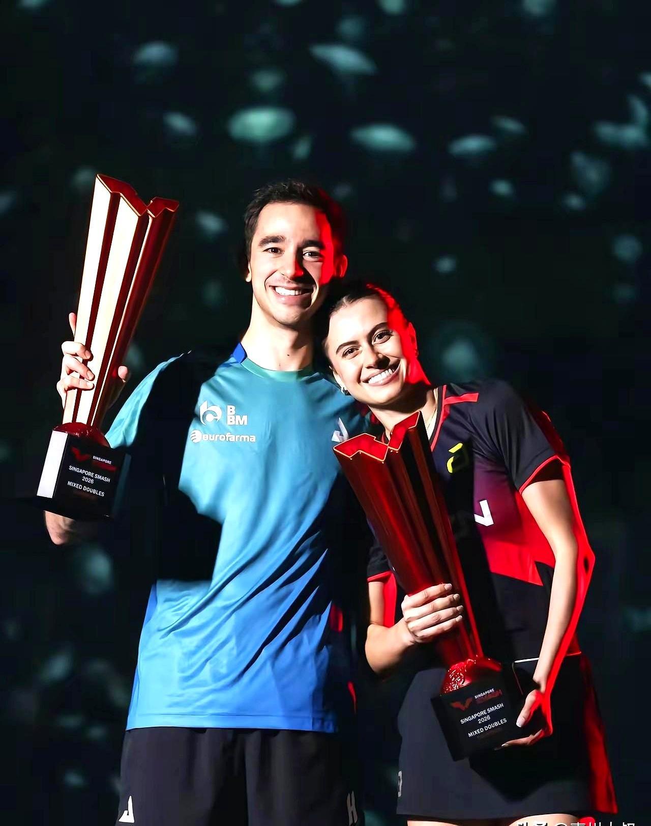 祝贺孙颖莎王楚钦双双顶峰相见夺得新加坡大满贯女单男单冠军![赞][赞][赞]