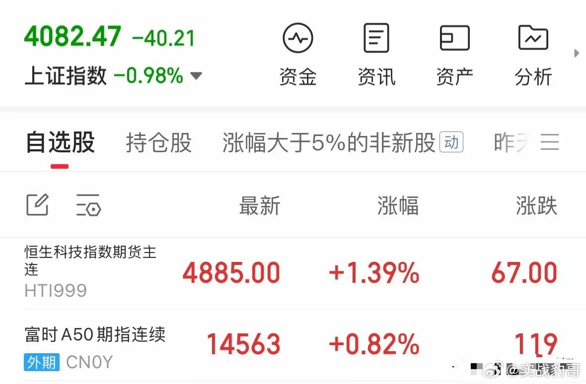 重磅利好消息恒生科技期指大涨1.39%,A50指数上涨明天港股和A股看涨:最新利好消息来了,3月4日晚恒生科技期指截至目前已大涨1.39%,加上A股收盘后上涨的0.8%,截至目前已有2%涨幅!恭喜今天抄底的投资者明天吃大肉。很可惜今天很多人在低位割肉。A50期指也大涨0.82%了,加上尾盘上涨,明天港股和A股大概率高开高走了,高开1%以上,不信点赞关注验证!