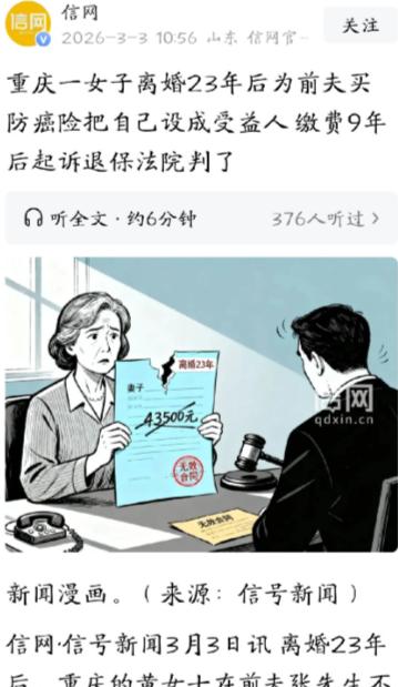 失算了!重庆,女子和前夫离婚23年后,心里还有怨气,便赌对方会得癌症。于是,她悄悄给前夫买了一份老年防癌保险,指定受益人是自己,还连续缴纳了9年保费,每年5000年。但天不遂她的愿,前夫身体健康,没有任何患病的迹象,女子怕这笔钱打了水漂,干脆将保险公司告上法庭,要求退还保费。这番操作,让保险公司彻底傻眼。 估计连保险公司都没见过这么离谱的诉求,明明是自己心甘情愿交了9年保费,最后反倒把保险公司告了,理由还特别荒唐——自己赌输了,怕钱白花。这事说起来,全是重庆这位女子的执念在作祟,一步错,步步错,最后闹得人尽皆知,得不偿失。 事情得从多年前说起,女子和前夫早在几十年前就离了婚,算下来足足有23年。按说这么久的时间,再大的恩怨也该淡了,可这位女子不一样,心里的怨气就没散过,越想越不舒服,最后竟生出了一个极端的念头:赌前夫得癌症。 她没跟任何人商量,也没让前夫知道,悄悄找了家保险公司,给前夫买了一份老年防癌保险。投保的时候,她特意把受益人写成了自己,心里打的算盘很明白:只要前夫查出癌症,她就能拿到一笔保险金,既解了心头之气,还能赚一笔,一举两得。 这份保险每年的保费是5000块,不算多,但架不住时间长。女子咬着牙,一年不落地交,一交就是9年,前前后后总共花了45000块。这9年里,她大概每天都在盼着前夫身体出问题,盼着保险公司能给她打钱,可现实偏偏不如她意。 她的前夫身体倍儿棒,平时没个头疼脑热,每年体检也都是正常的,别说癌症了,就连小毛病都很少有。眼看着保费交得越来越多,可一点“回报”都没有,女子开始慌了——这45000块可不是小数目,要是前夫一直健健康康,这笔钱不就打了水漂吗? 越想越心疼钱,女子干脆破罐子破摔,琢磨着怎么把这笔保费要回来。她翻来覆去研究保险合同,还真让她找到了一个“突破口”,就是我国的保险法里有规定,投保人对被保险人不具有保险利益的,保险合同无效,保险公司得退还保费。 她一想,自己和前夫都离婚23年了,早就不是夫妻了,按理说,她对前夫根本没有保险利益,当初签的那份保险合同,本来就是无效的。抱着这个想法,女子直接一纸诉状,把保险公司告上了法庭,要求保险公司全额退还她9年交的45000块保费,还额外要求赔偿资金占用的损失。 保险公司接到起诉状的时候,彻底懵了,怎么也想不通,自己好好做着生意,怎么就被人告了。他们很快就拿出了反驳的理由:当初投保的时候,女子自己在表格上填的,和被保险人(也就是她前夫)是夫妻关系,而且保险公司电话回访的时候,她也没否认,一直默认自己是对方的妻子。 保险公司说,投保人有没有保险利益,本来就是投保人自己要如实告知的,这是法定义务。女子明明已经离婚,还故意隐瞒事实,冒充夫妻投保,就算合同真的无效,那也是她自己的过错造成的,跟保险公司没关系,不该由保险公司来承担损失。 更有意思的是,这件事里最无辜的,其实是女子的前夫。他直到2023年,才知道自己被前妻买了一份防癌险,还是盼着自己得癌症的那种。换谁遇到这种事,心里都得不舒服,他直接向法院表示,保单上的签名根本不是他自己签的,他从来不知道这份保险的存在,更不同意前妻给他投保。 法院审理的时候,把这些情况都查得明明白白。法官认为,女子投保的时候,和前夫已经没有法律上的夫妻关系,也没有其他法定的近亲属关系,而且前夫明确表示不同意她投保,保险公司也拿不出证据证明,当初投保的时候,前夫是知情并且同意的,就连保单上的签名,也无法证明是前夫本人签的。 根据我国保险法和相关司法解释,人身保险的投保人在订立合同时,对被保险人必须具有保险利益,否则合同无效。而女子和前夫之间,显然不具备这种保险利益,所以这份保险合同从一开始就是无效的。 最终,法院做出了判决:保险公司退还女子扣除佣金后的保费,一共是43500块,至于女子要求的资金占用损失,因为她自己也有过错——故意隐瞒离婚事实,虚构夫妻关系投保,所以法院没有支持。目前,这笔保费已经退给了女子。 这事看到这儿,估计很多人都有话说。表面上看,女子拿回了大部分保费,好像是赢了,但实际上,她输得一塌糊涂。9年的时间,她一直被怨气和贪念牵着走,每天盼着别人倒霉,最后不仅没占到便宜,还落得个名声不好的下场,更浪费了自己9年的时间和精力。 而保险公司,也不是完全没有责任。当初销售保险的时候,业务员明明知道女子已经离婚,还默许她填写“妻子”身份,核保的时候也没有严格审核,没有确认被保险人是否知情、是否同意,才留下了这个隐患,最后不仅要退还保费,还丢了信誉,也算给整个保险行业提了个醒。 有人说,女子的怨气太重,才做出这种荒唐事;也有人说,保险公司审核不严,也该承担责任。不知道大家怎么看?如果是你,遇到这种情况会怎么做? 投保的时候,你会仔细核对所有信息,还是会轻信销售人员的说法?