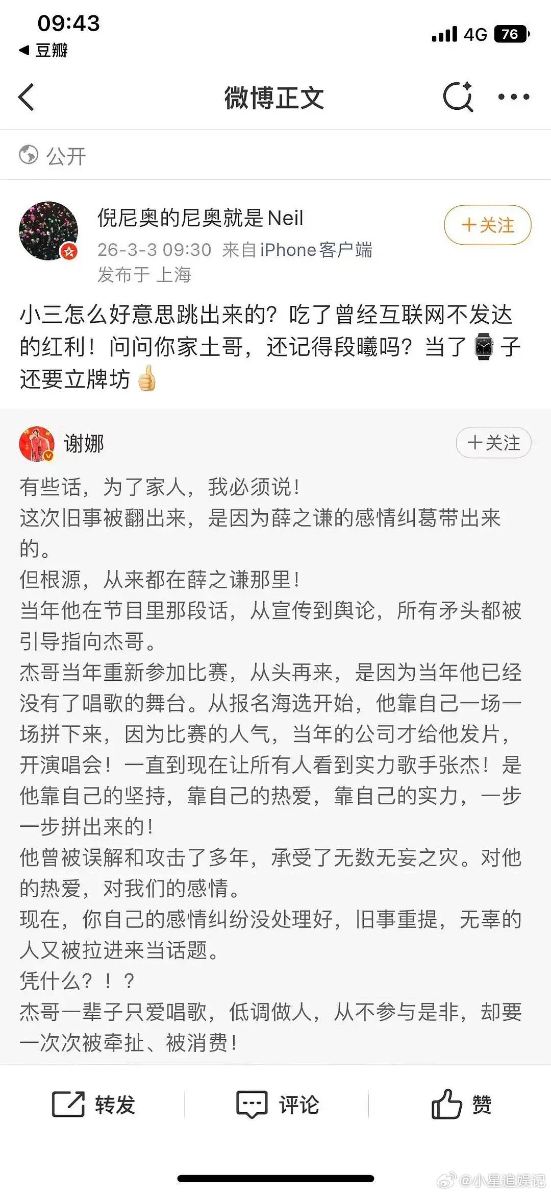 谢娜这个操作有点不明智,这不有人出来说谢娜了