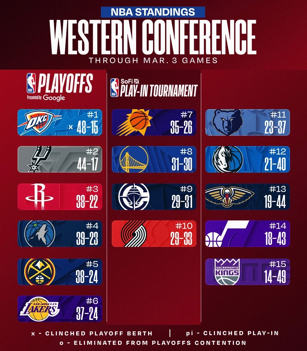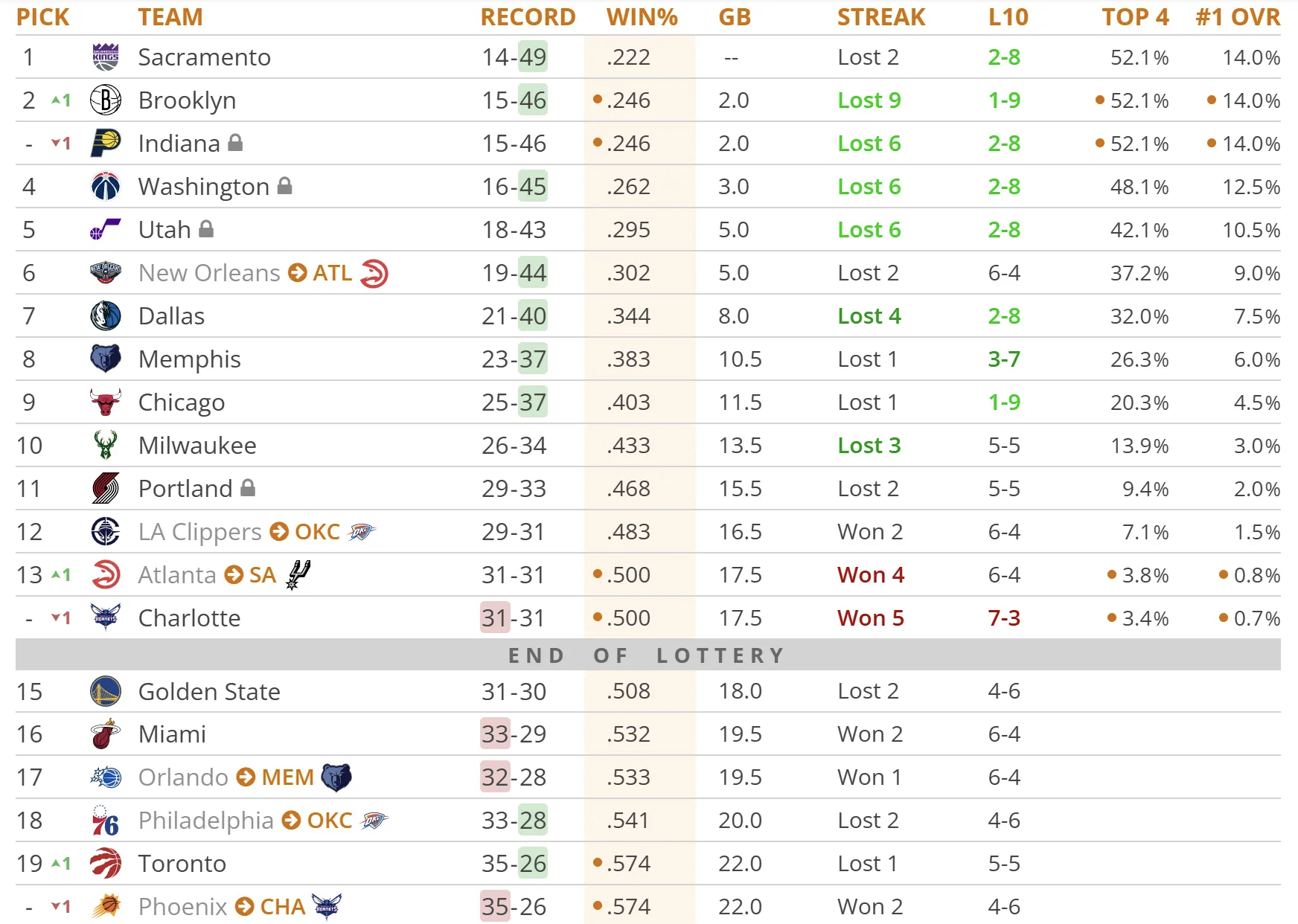 今日赛后排名与签位更新:黄蜂大胜独行侠,获得联盟实时最长的五连胜,骑士4分力克活塞,尼克斯客场击败猛龙,马刺40分狂胜76人。赛季末要重点关注一下76人签位了,距离乐透区只有一步之遥。