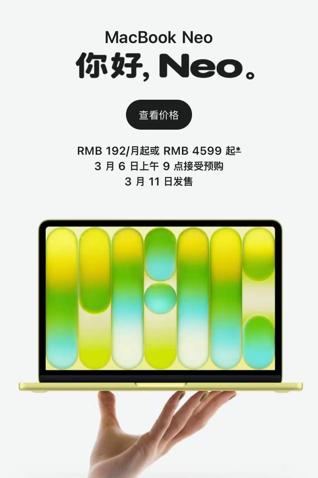 MacBook Neo苹果这是真的要把轻薄本市场卷到地心啊!4599起就能买MacBook,还是A18Pro芯片,性能日常用完全够打。四个马卡龙色颜值拉满,16小时续航,还有3.5mm耳机孔和双Type-C,终于不用带转接头了。256G版没Touch ID,没键盘背光,Type-C还分3.1和2.0,512G版才给全。说白了,这就是个套了Mac壳的iPad增强版,苹果这是要抢低价本的蛋糕了。你们会冲256G还是512G?