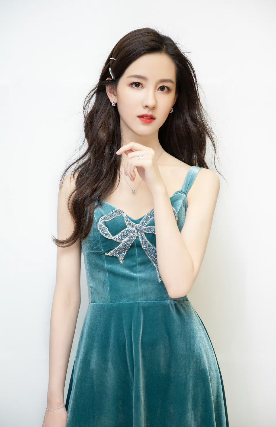 刘亦菲这条裤子挺养生,毕竟降温了肚脐眼必须护住啊