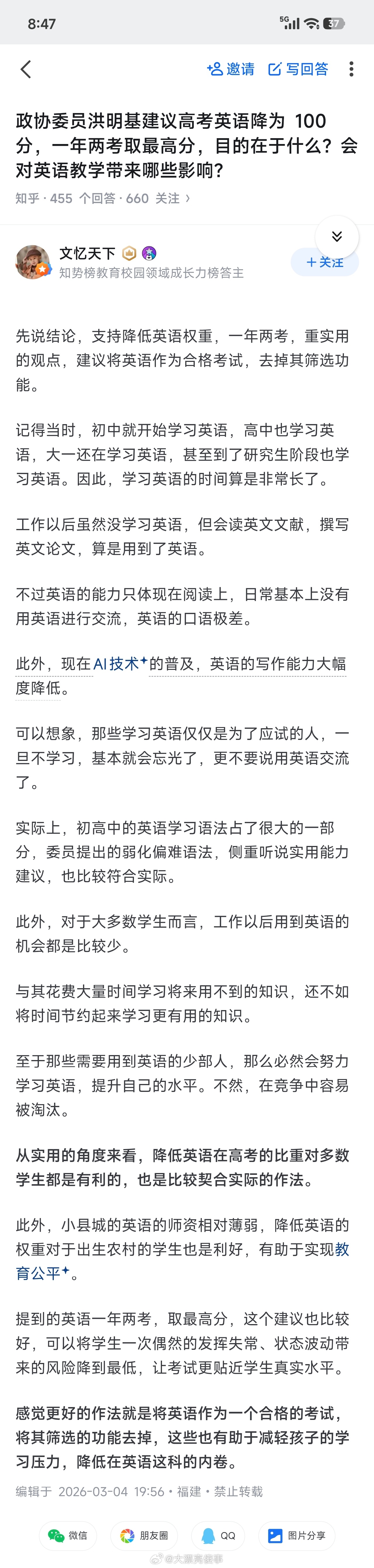 把高考英语降成100分挺好的,英语越来越没用的大趋势以后会更加明显。