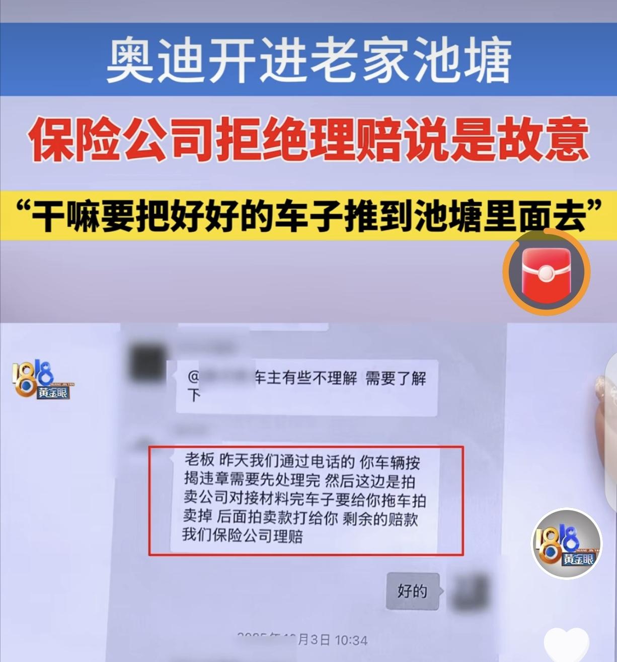 “玩不起!”浙江杭州,一男子开着自己花43万买的奥迪A6L,回老家看母亲,直接把车开进池塘,他从开着的车窗爬了出来,车子却泡水报废了! 按全车险保险合同,他能获赔36万,但保险公司却拒绝理赔,一口咬定,他是故意把车开进池塘的,理由是同期同款车型售价是25-30万,车损险保额远高于市场价值,不服就去告。男子彻底傻眼了。 说实话,当朱先生拿到那张盖着公章的拒赔通知书时,他整个人都懵了。2026年1月6日这天,他怎么也想不到,自己会因为一场差点要命的车祸,反倒被保险公司扣上"骗保"的帽子! 通知书上"故意制造保险事故"这八个字,简直像刀子一样扎在心上,更荒唐的是保险公司给出的理由——2022年你买这辆奥迪A6L花了43.18万,当时定下的车损险保额是36.65万。 可到了2025年底,汽车市场价格战打得天翻地覆,同款新车25到30万就能拿下。所以呢?保险公司的逻辑简单粗暴得吓人:你的车现在只值20多万,保险却能赔36万,这多出来的11万差价,就是你"谋杀"这辆车的动机! 这是什么鬼逻辑?车市降价是我能控制的吗?难道我还能预测三年后市场会崩盘? 在杭州做全屋定制生意的朱先生,这辈子都没想过自己会摊上这种事。回想起2025年11月那个要命的夜晚,他现在还心有余悸,那天接到安徽六安老家的急电,母亲摔断了胳膊,他二话不说扔下生意就往老家赶,满脑子都是老人家疼不疼、伤得重不重。 事故就发生在那条只有2.7米宽、到处是急转弯和陡坡的乡村混凝土路上。手机从副驾驶滑落的一瞬间,他下意识俯身去捡,方向盘失控,油门被误踩,黑色奥迪以36.6度的斜角直接栽进池塘。要不是之前为了给老乡递根烟没关车窗,等水漫过车顶,他这条命估计就交代在那儿了。 更让朱先生寒心的是,保险公司翻脸比翻书还快。 事故发生后的两个月里,他像个听话的学生一样配合着所有流程。对方说要走理赔,他就忙前忙后结清了车辆剩余贷款。对方说要走拍卖,他就老老实实寄去了车辆登记证书。 12月26日,工作人员还在电话里安抚他,说第三方调查报告没啥大问题,等浙江这边确认了就打款。结果呢?等来的不是打款短信,而是一纸"法庭见"的战书! 保险公司摆出了一副"不服就去告"的架势,这种底气说白了就是在赌。近年来,"捡手机导致落水"确实成了骗保圈的烂梗,江苏盐城就有人开着保额97万的奔驰落水,结果被行车电脑数据抓了个现行。 可朱先生不是那个开奔驰的赌徒啊!为了这趟回家,他刚花了5000多块换了四条新轮胎,他的通话记录里全是母亲受伤后的焦灼,最关键的是,警方从头到尾都没认定这是骗保案! 从法律角度看,保险公司这波操作简直是在玩火。《保险法》写得明明白白,认定"故意"的举证责任在保险公司,而且证据必须达到"高度盖然性",就凭一个"保额高于市场价"的推测,想在法庭上站住脚?做梦! 上海金融法院早就有判例摆在那儿:合同是签保单时双方自愿定的,那会儿大家对43万的身价都没异议,现在车市降价了,保险公司就想用"现在的市价"去推翻"当年的契约",这不是耍赖是什么?这是对契约精神赤裸裸的践踏! 说穿了,保险公司就是在赌,赌一个忙于生意的商人耗不起半年的诉讼周期,赌普通人面对高昂律师费和评估费时会退缩。他们希望通过这种高压姿态,逼着车主接受一个远低于保额的打折赔偿,最后灰溜溜地认栽。 如今,朱先生的奥迪还停在修理厂里,像堆废铁一样记录着这场关于诚信的闹剧。试问,如果保险真的变成了"赢了难、输了更难"的概率游戏,如果每一位车主都要为无法预知的市场降价背上"骗保嫌疑",那我们买的到底是保障,还是一张随时会被作废的废纸? 朱先生已经决定起诉了,这不再仅仅是为了那11万的差价,而是为了讨回一个常识:市场的波动,凭什么要让守信的人来买单?这一仗,必须打! 信源:中国经济网 2026-03-03 10:00 理赔申请被拒绝奥迪开进池塘保险怀疑故意