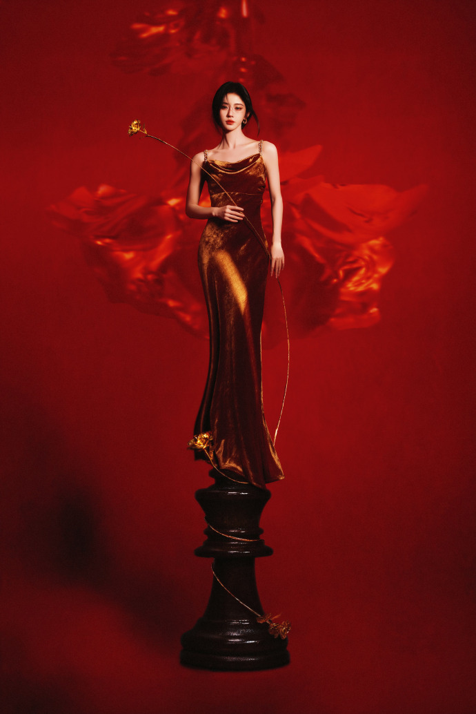 鞠婧祎鎏金长裙完全女王