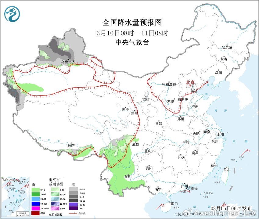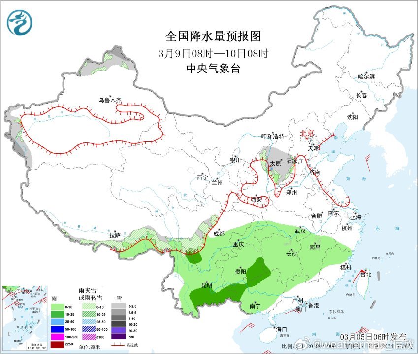 今天华南的降雨缩减,浙江等地因为偏东风的输入,还有小到中雨。此外西南地区的阴雨,从今天开始逐渐增多,6-9日将出现连续的阴雨。10日四川东部、重庆、贵州的降水暂告一段落。而10-11日,又有明显冷空气影响新疆,可能导致新疆北部出现大范围的雨雪,后期继续关注。