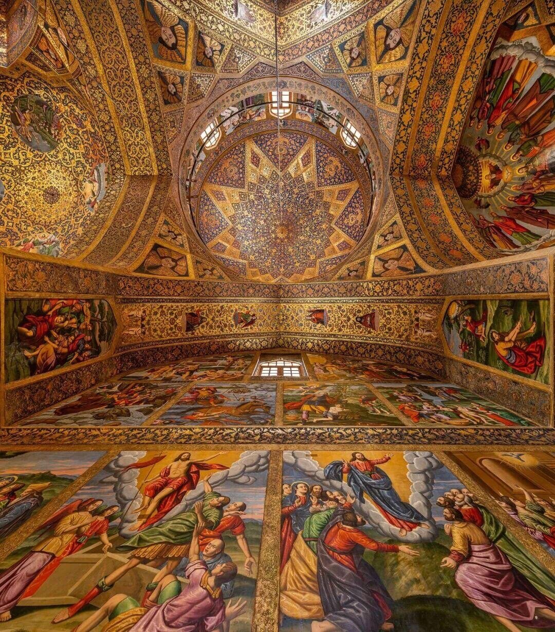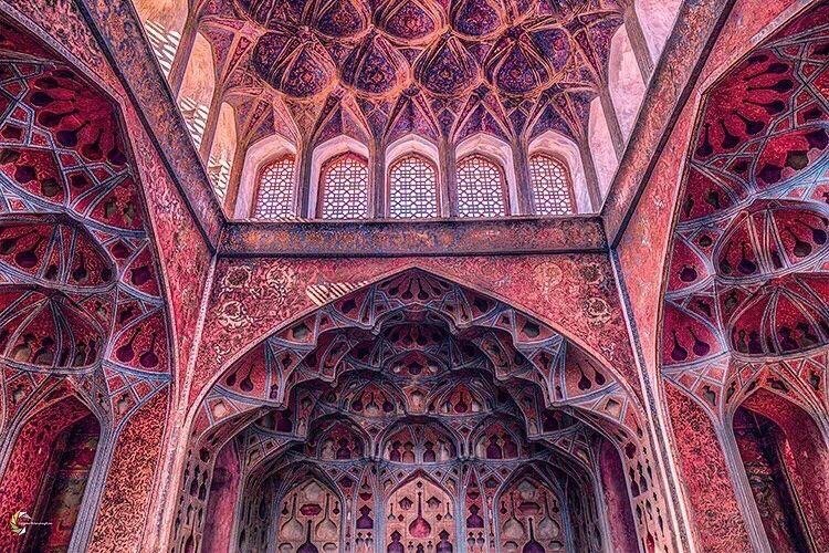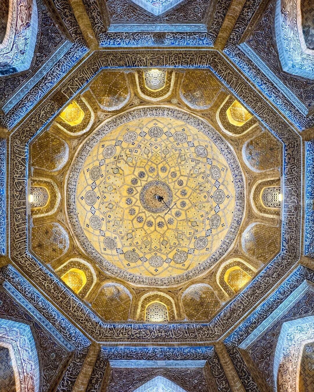伊朗艺术 | 穹顶之下(2)文明是脆弱的,但美具有韧性。一个个穹顶如同万花筒里边的景象一样,璀璨夺目到让人移不开眼睛。当你步入之后,站在穹顶之下仰望穹顶,看到上面细密精美的图案在夕阳的照射下反射出紫金色的光辉的时候,会感受到建筑之美带来的强大的力量。伊朗袭击以国防部大楼战争让艺术瑰宝只剩回忆