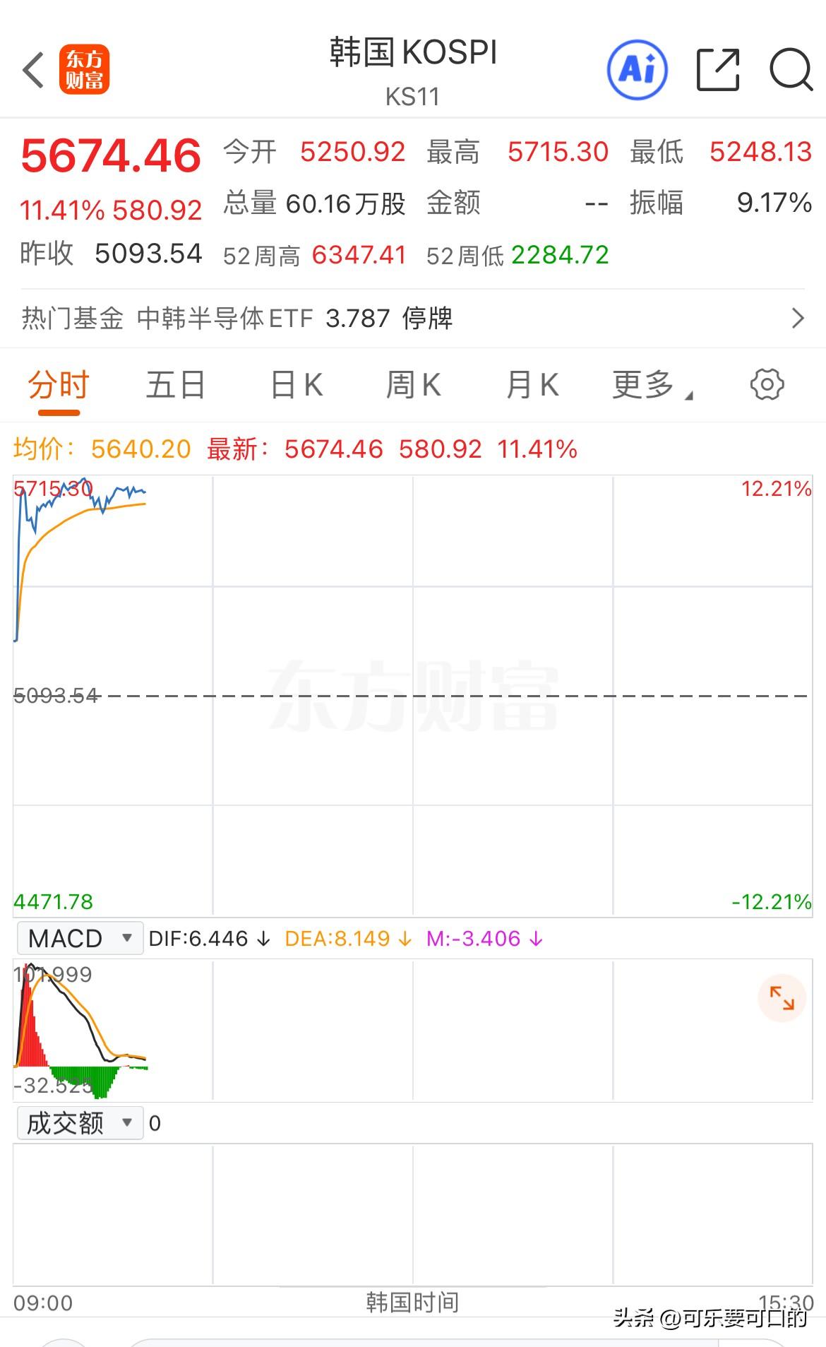 太离谱了!韩国股市居然反包了!要知道昨天韩国股市刚刚遭遇了史诗级暴跌,足足跌了12个点! 但没想到的是今天韩国KOSPI指数直接高开3个点,然后一根直线就冲到了11个点以上,在短暂回调之后又继续上攻,一度涨超12%,成功反包,简直是不要太疯狂! 另外,日本股市也已经上涨超4%,也成功实现了反包!