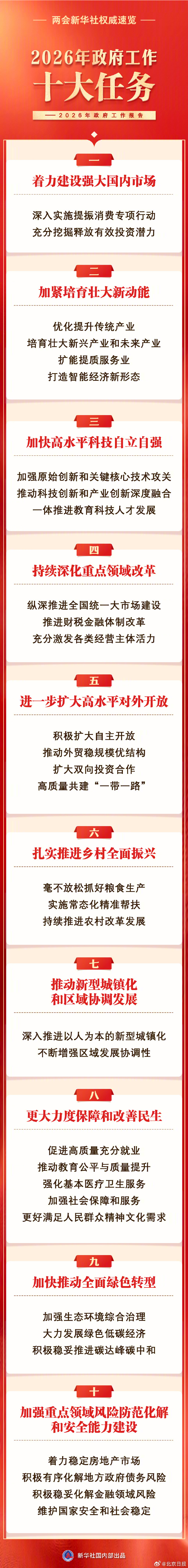 #2026政府工作报告#【#2026年政府工作十大任务#】 政府工作报告提出2026年政府工作十大任务,一图速览。#2026两会速递# (新华社)