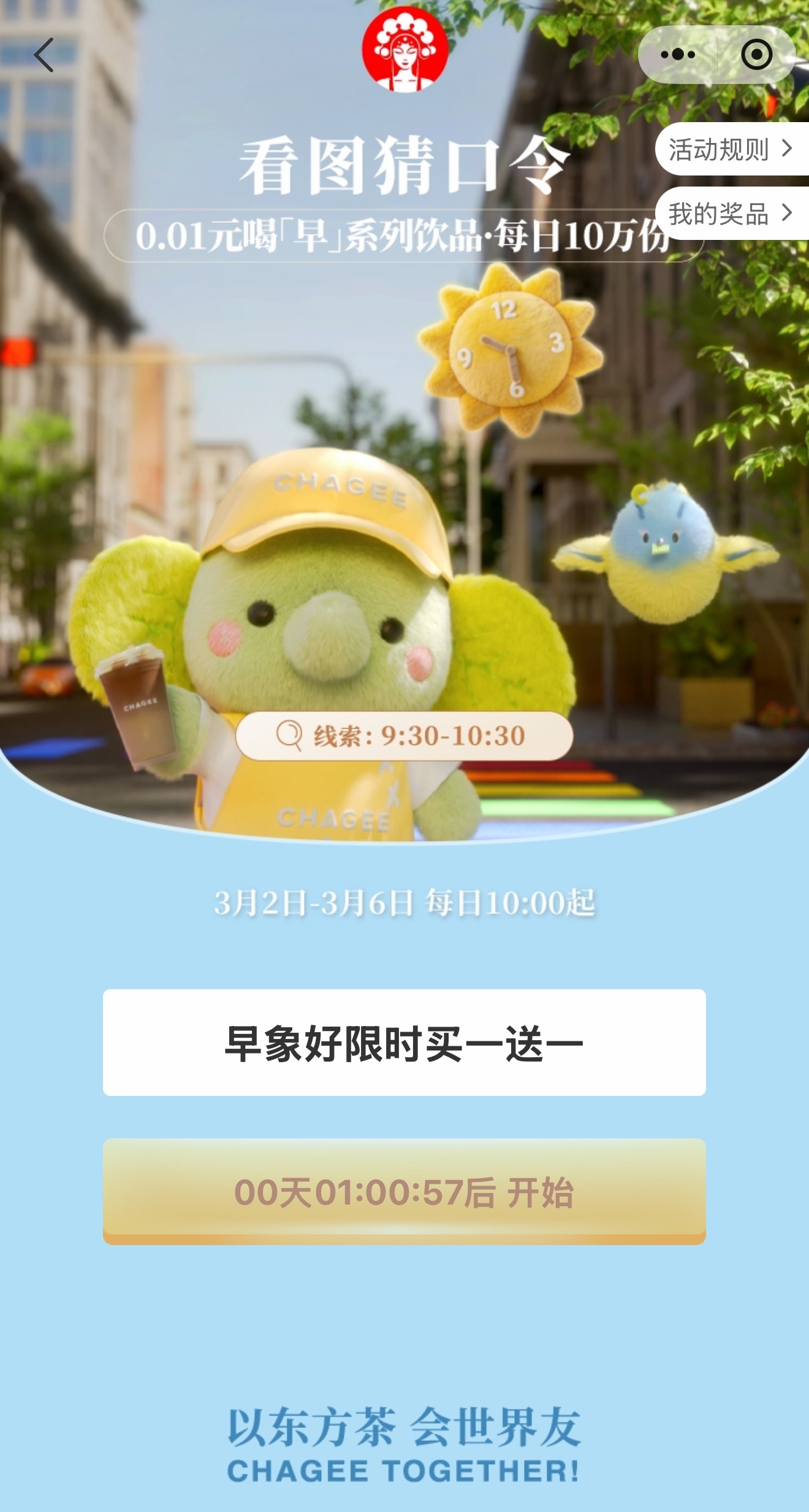 今日份霸王茶姬口令,我猜是早象好限时买一送一