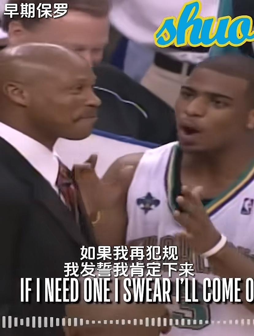 最近保罗早期的原声录像视频被球迷找出来了,看看当年作为蜂王的他是怎么跟教练争取出场时间的。 当时保罗下场后对着教练说:“让我打吧,教练让我上场吧?我感觉很好,让我继续上场吧,求你了!求你了!我保证如果我再犯规我发誓会下来。” 教练也是笑笑看着他没让他上场,但保罗继续祈求教练让他上场,还一直跟在教练身后让他给自己上场。 后来保罗在采访中也说到这件事:作为年轻人,我每场比赛都会跟教练争取更多的上场时间,机会是自己争取的! 当年在勇士的时候他还指导TJD等年轻人:当教练叫到你名字的时候,你就得赶紧起身。跑起来,全力冲刺让自己身体尽快热起来,用心感受我说的话。 虽然最终老炮没能获得总冠军,但作为球员那份对篮球的执着是值得敬佩的。不像现在很多年前门面,连全明星都不珍惜,敷衍了事,更别说为了赢球而拼博的精狠劲了。