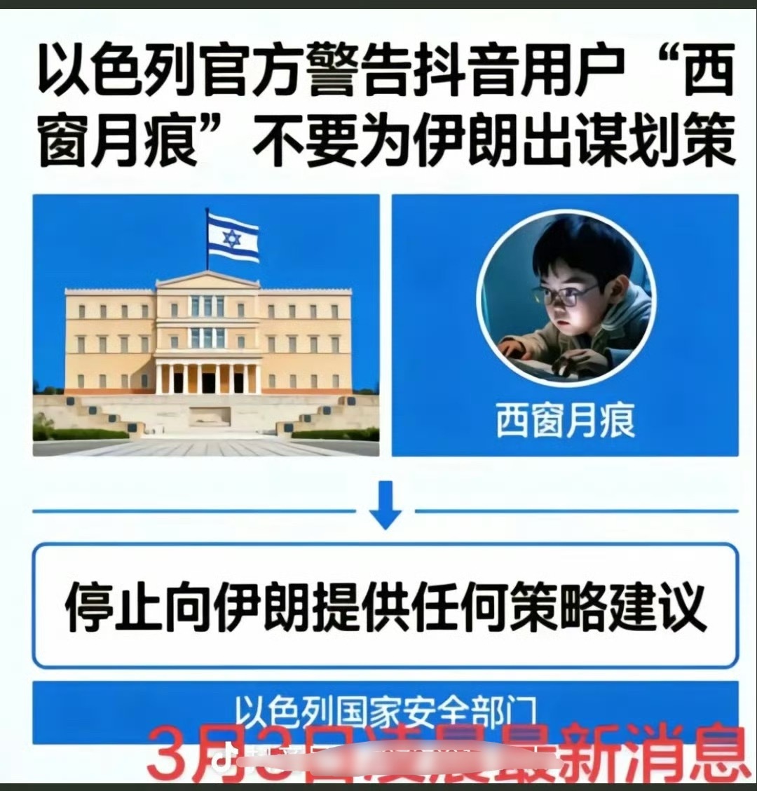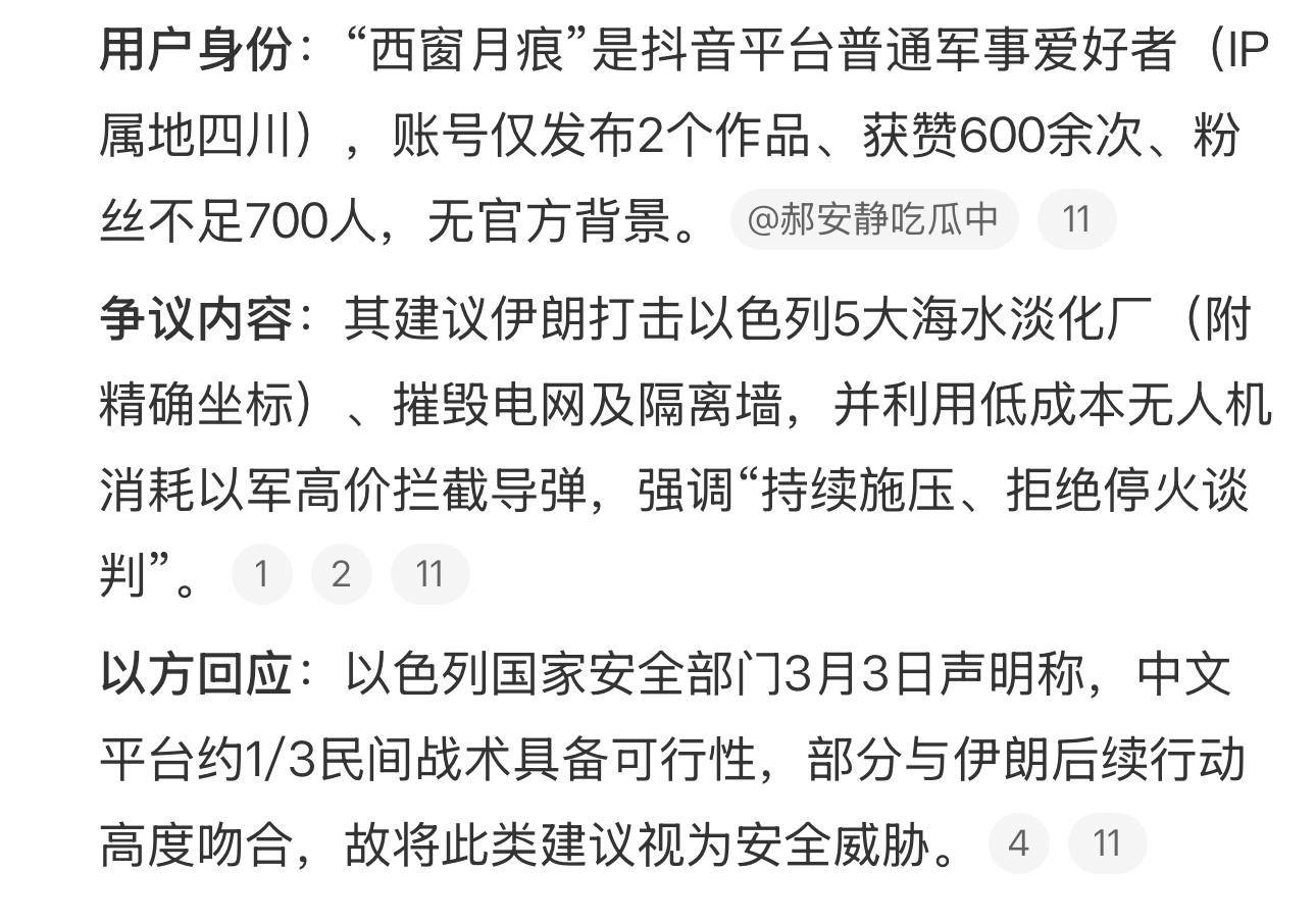 噗……中国网友“西窗月痕”被以色列安全部门点名,警告不能向伊朗出谋划策看来“西窗月痕”出的主意戳到了以色列的痛处,这是官方认证了