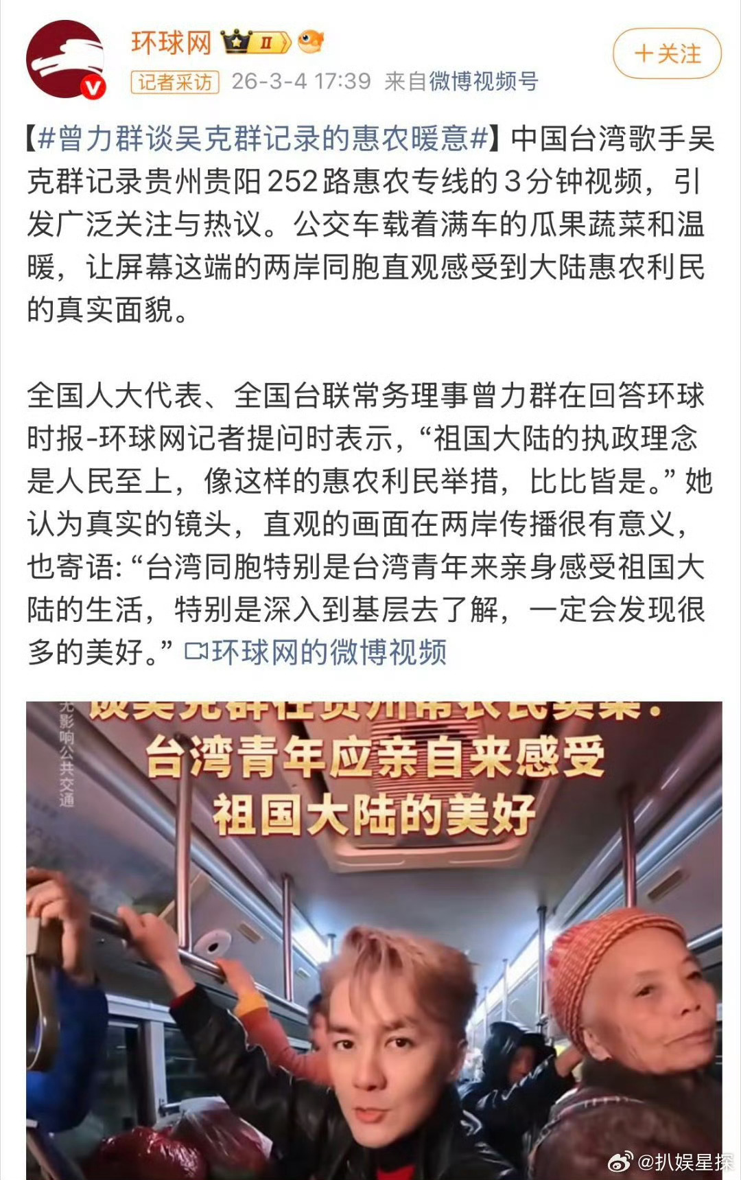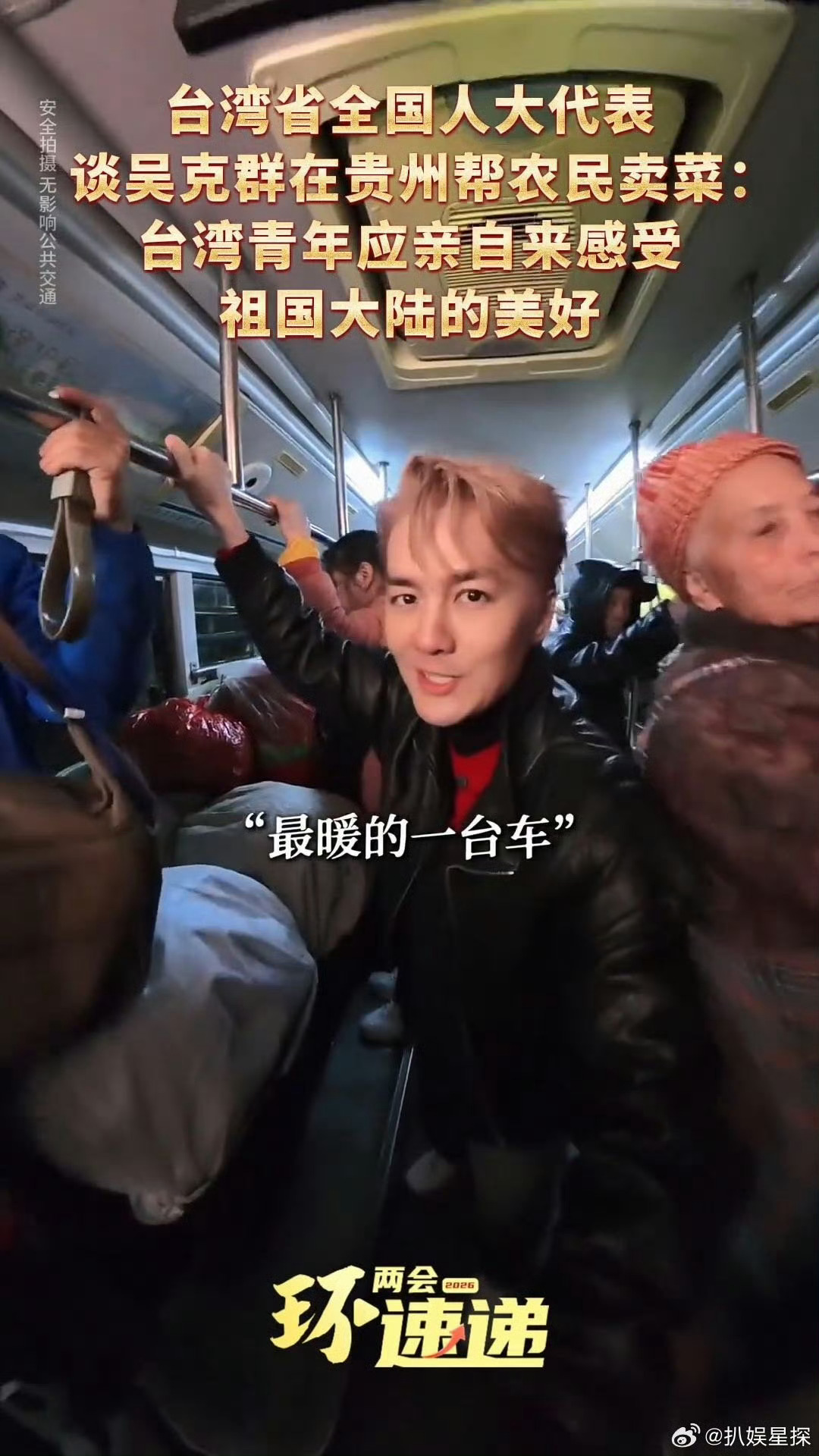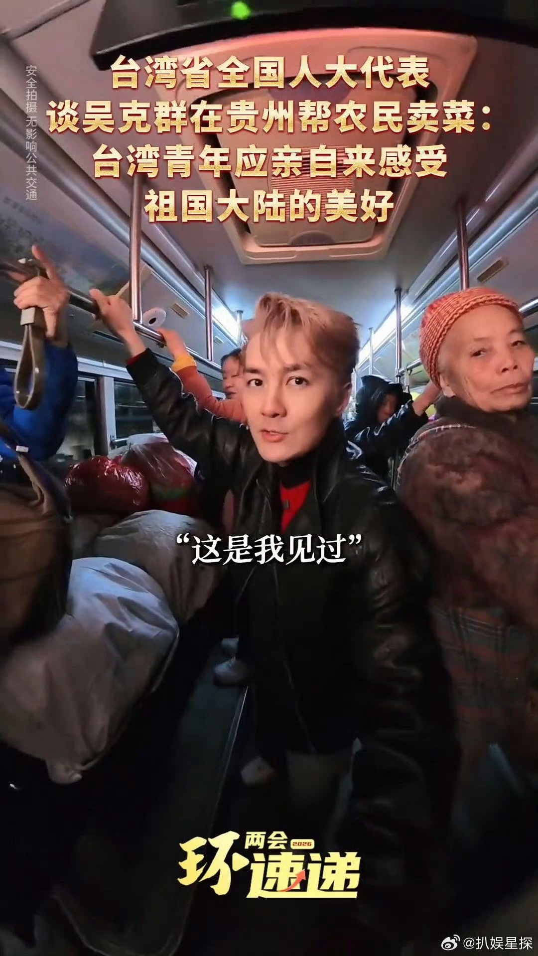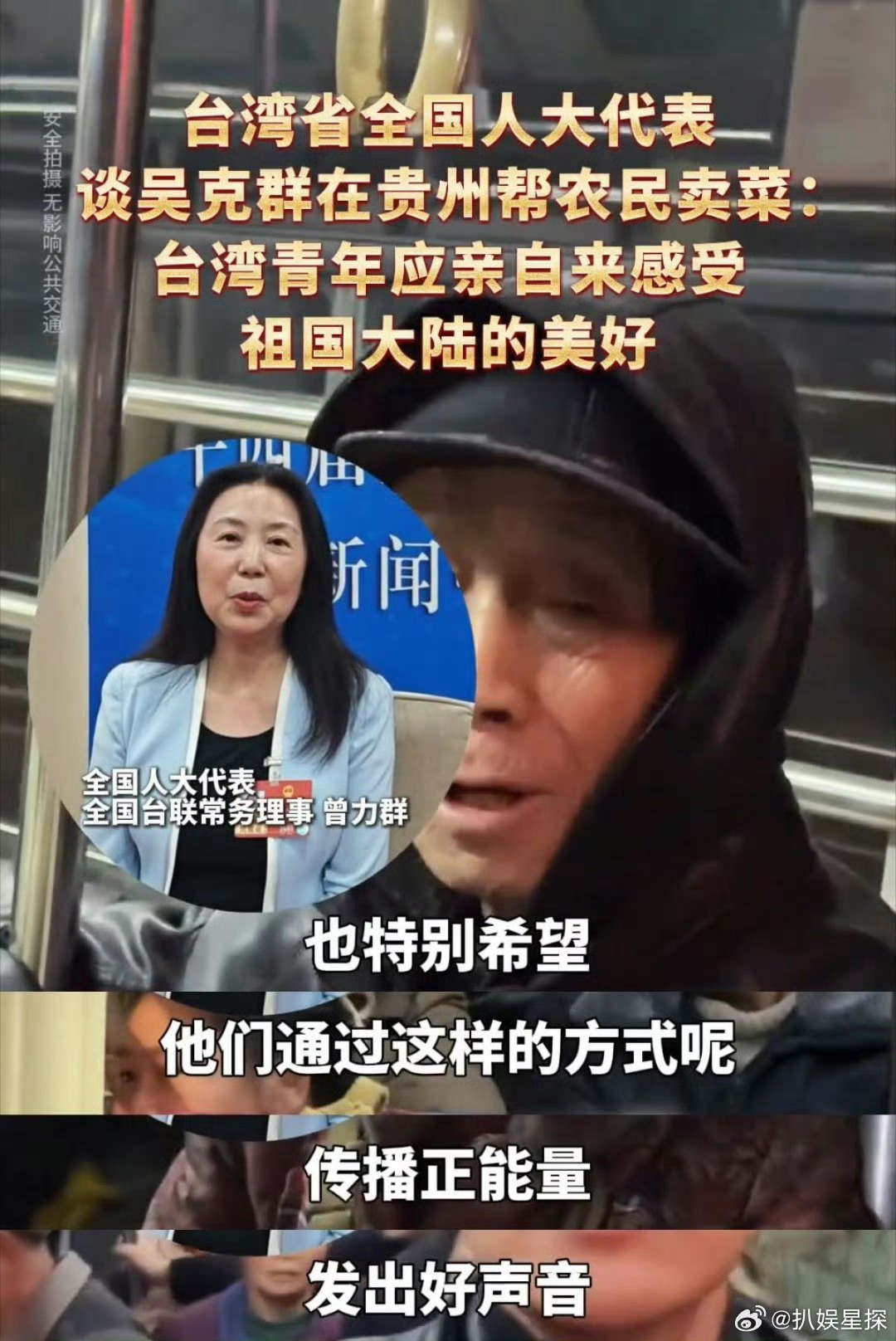 代表谈吴克群帮农民卖3万斤菜吴克群下地帮菜农干活,手上磨出的茧子比想象中还厚。三万斤蔬菜一天卖光,他用最实在的方式让两岸看见彼此最美的一面 台湾省全国人大代表谈吴克群