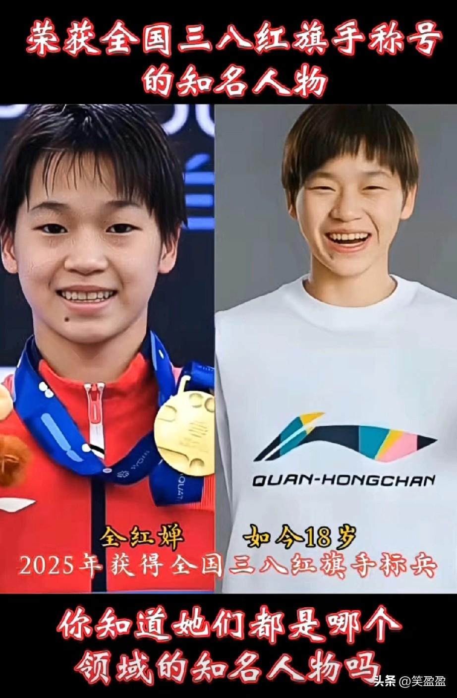 荣获全国三八红旗手的知名人物。 恭喜全红婵标兵更高一级[比心][赞]