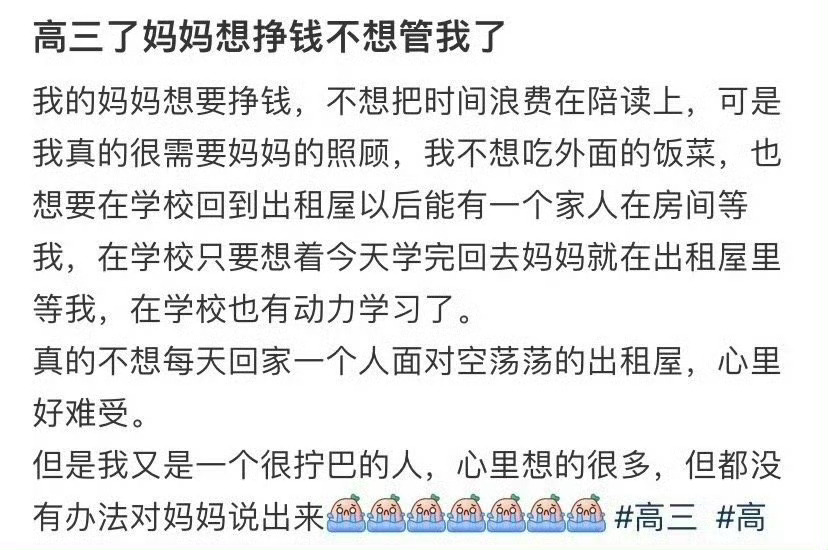 高三了妈妈想挣钱不想管我了
