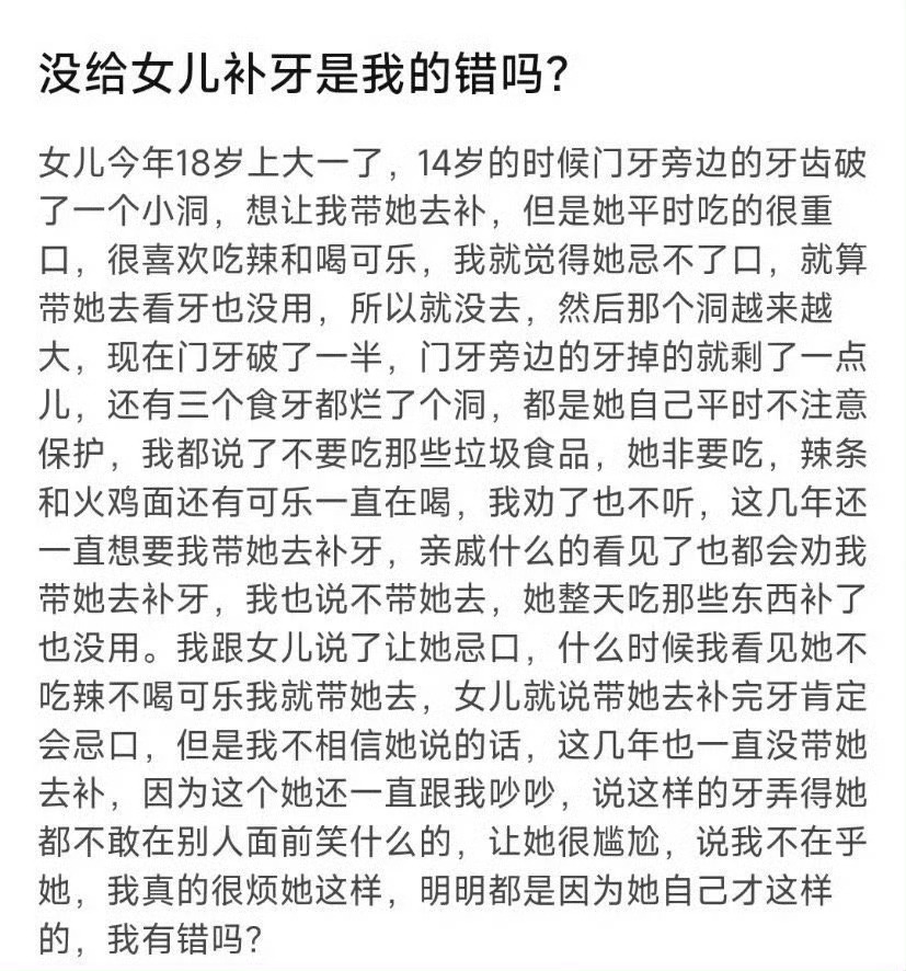 没给女儿补牙是我的错吗?