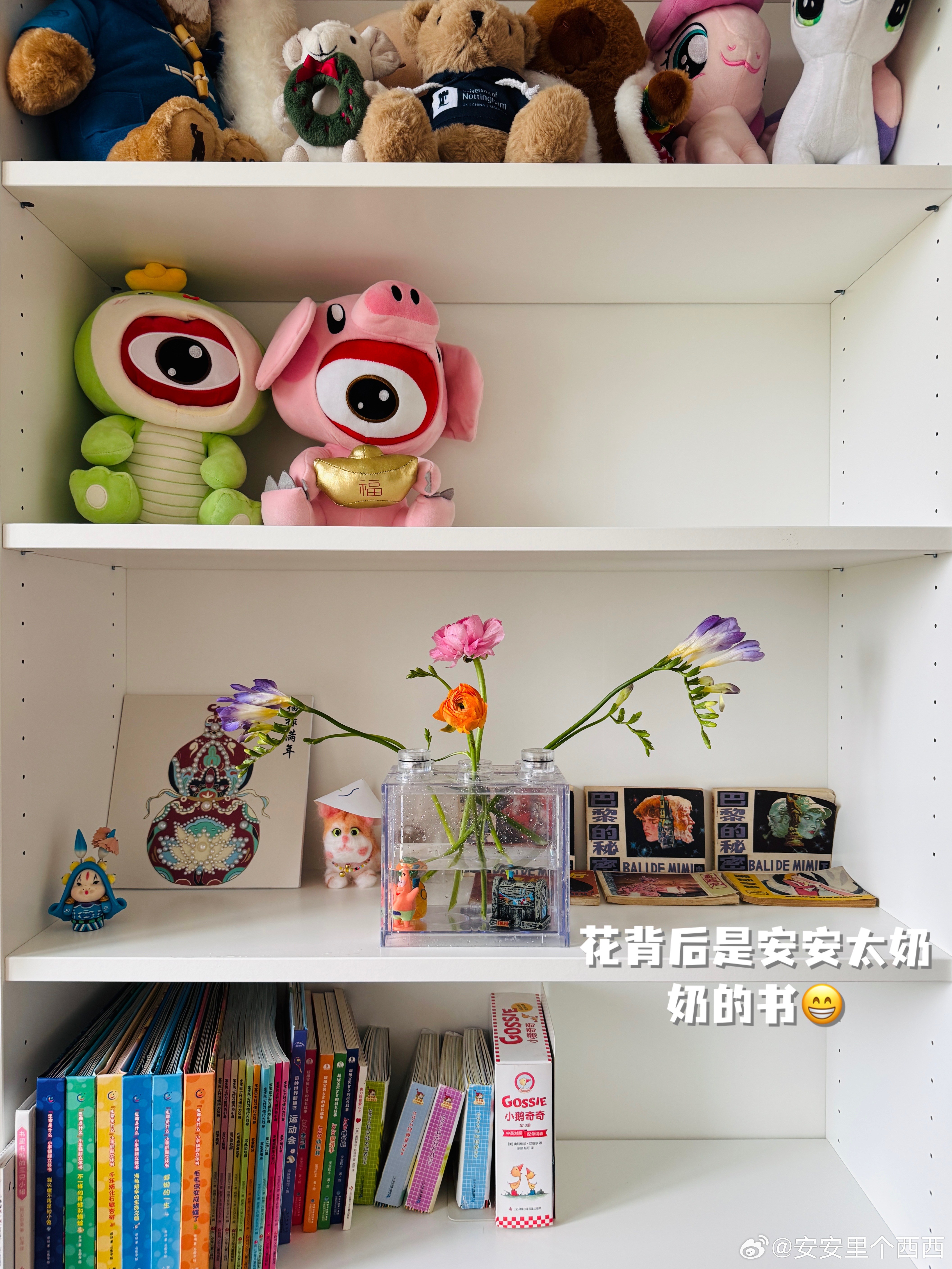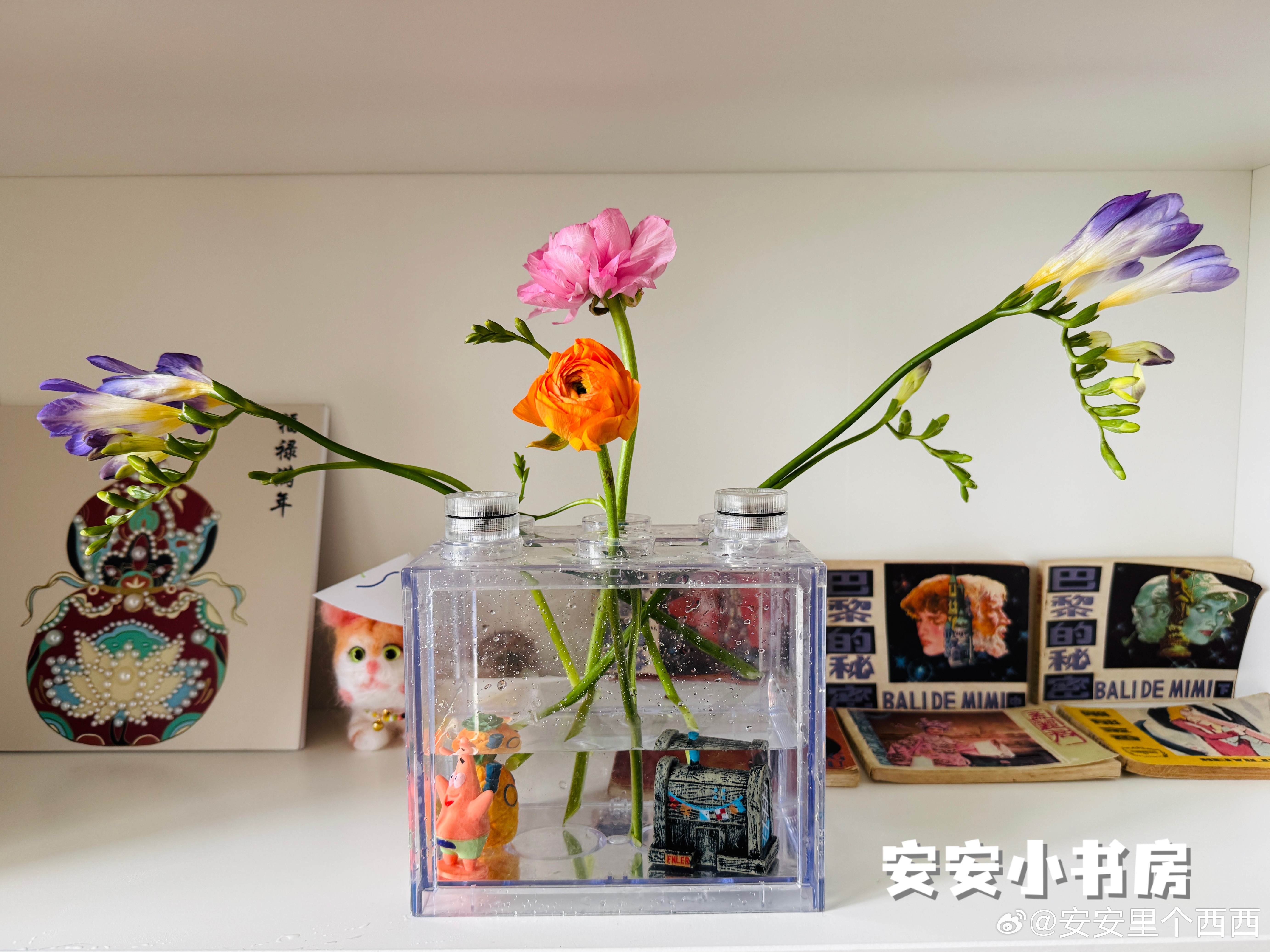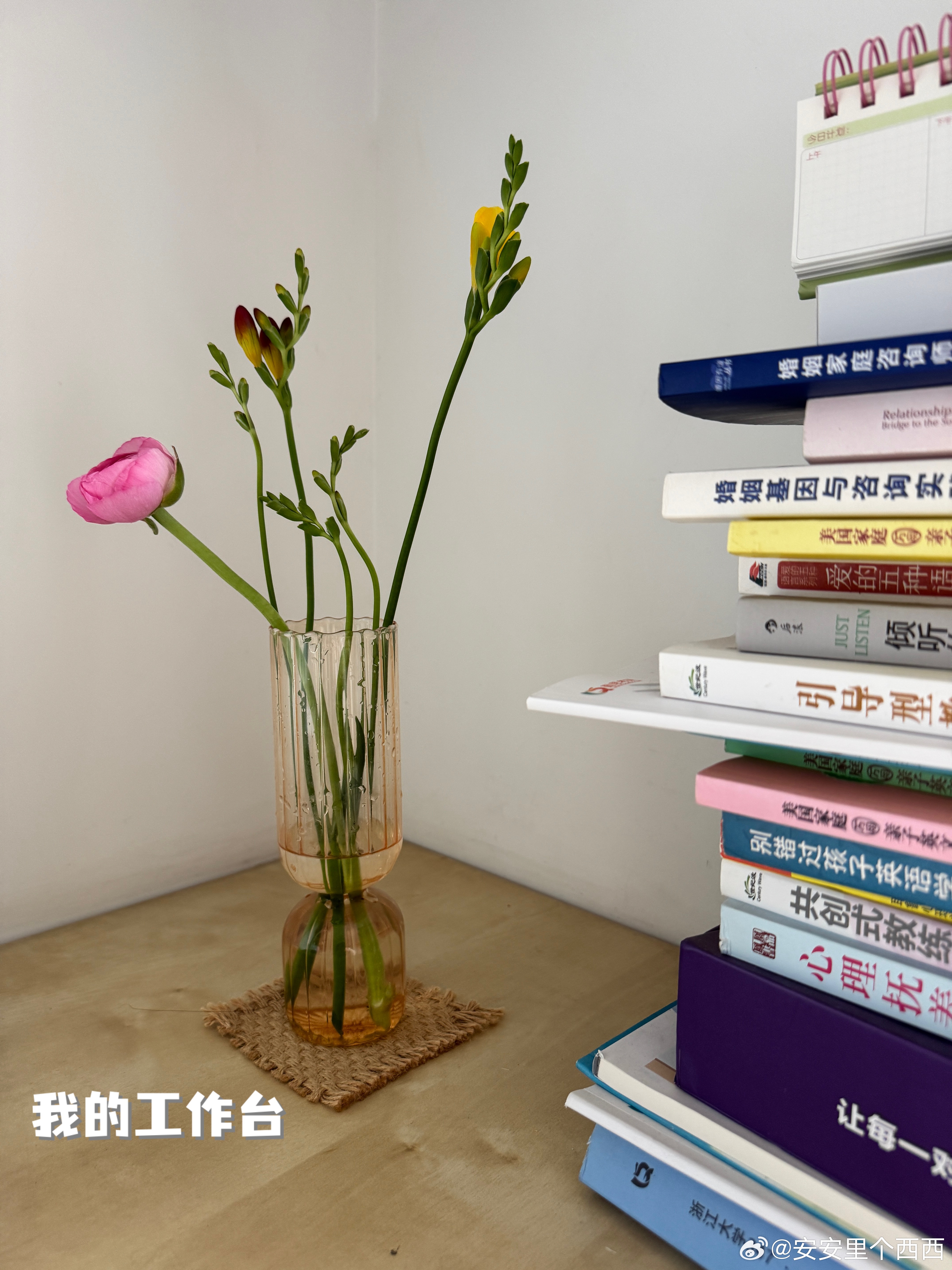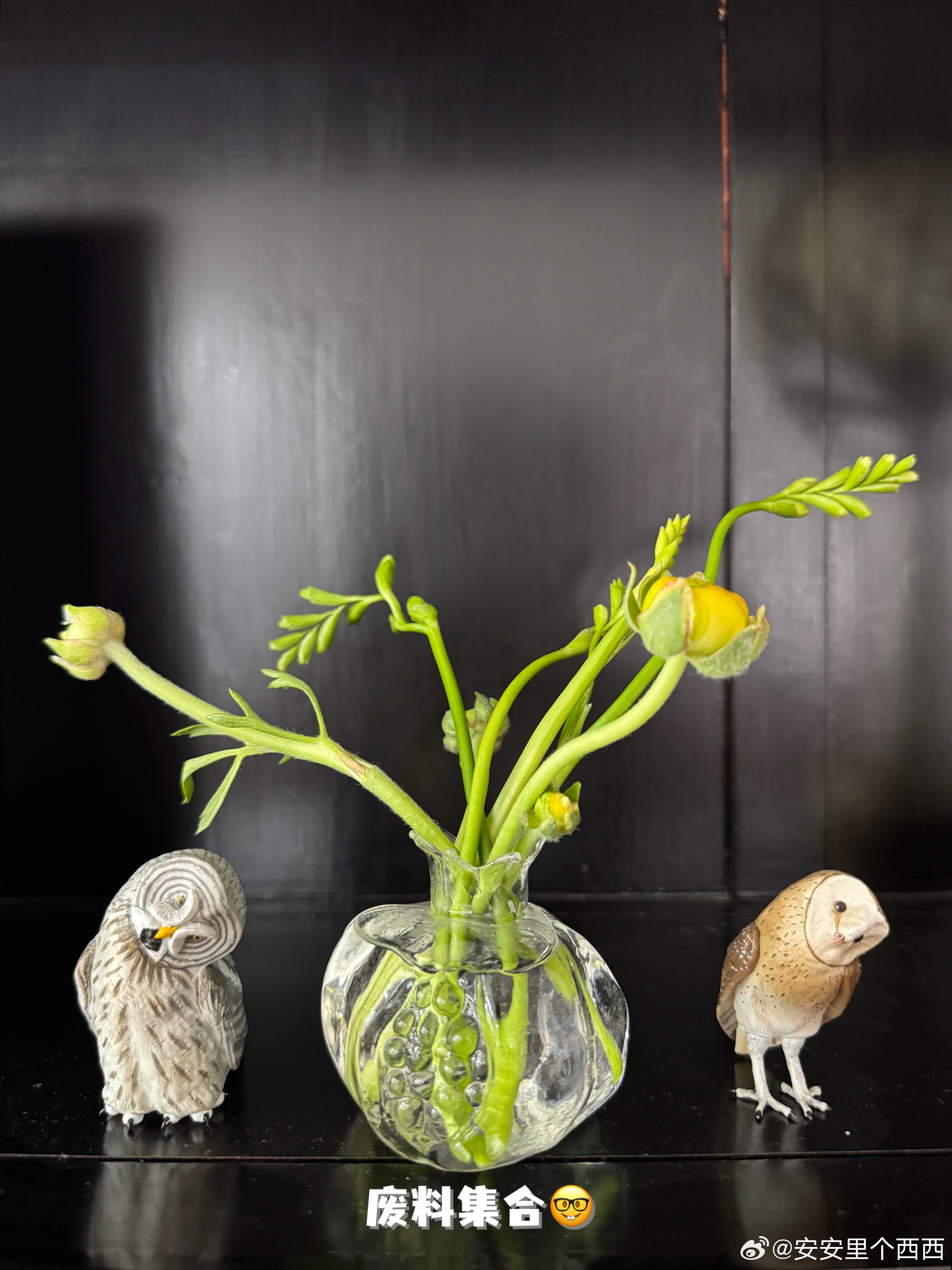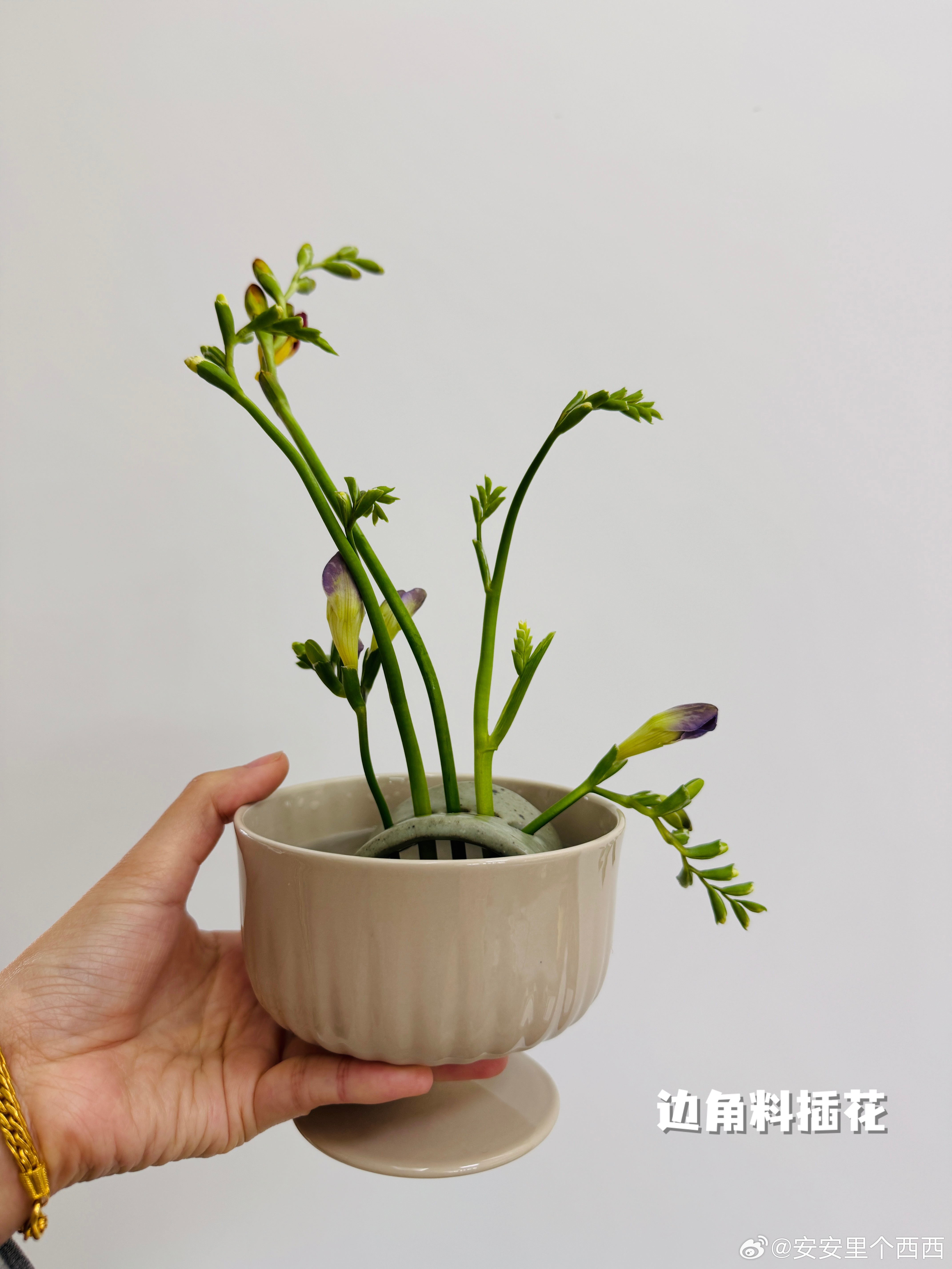 图 6 是插花后舍不得丢的废料,我找了个小瓶子放一起,看着好像也不违和