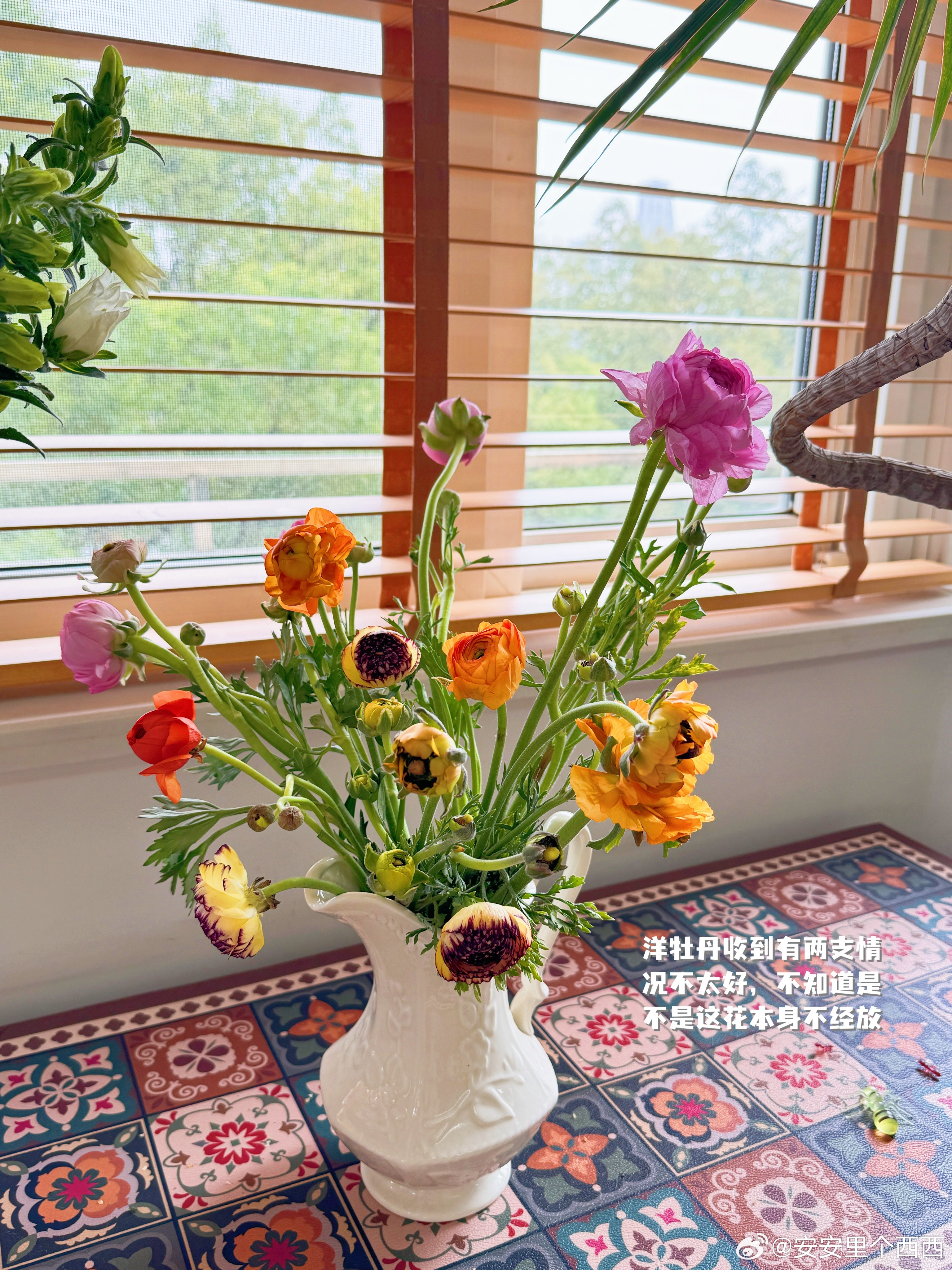 这组花我在海南时候就下单了,当时主页刷到,想着春天来了,家里的冬花该换了,昨天收到一看还行,【洋牡丹+香雪兰+风铃】3 束,花量就是图一图二图三那么多,不包括那支龟背竹龟背竹很少住单间,总会要拼房