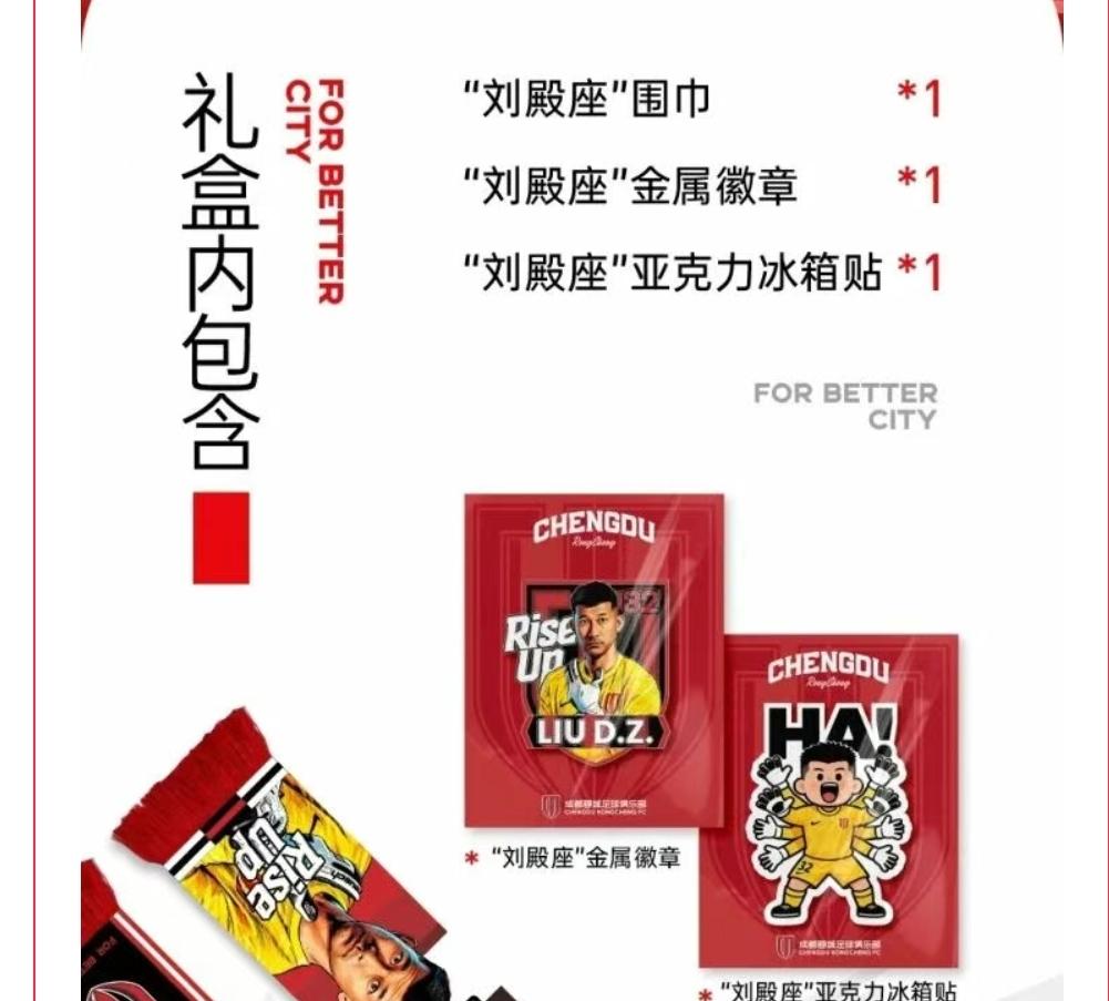 今天成都蓉城官方宣布发售一款门将刘殿座的礼盒,售价88,里面包含以刘殿座为主题的冰箱贴,围巾和金属徽章,喜欢刘殿座的成都蓉城球迷可以关注一下,泰山队其实也应该多开发一下球员的衍生品,泰山队的王大雷在泰山球迷群体中有超高的人气,所以也可以效仿一下成都蓉城,给大雷也开发一款衍生礼盒,相信会有不少喜欢王大雷的球迷会选择消费和捧场,泰山队坐拥庞大的球迷粉丝群体,人数位居中超第一,但在商业开发等方面却不如申花,国安,成都等球队,这不得不说是泰山队的一种损失!