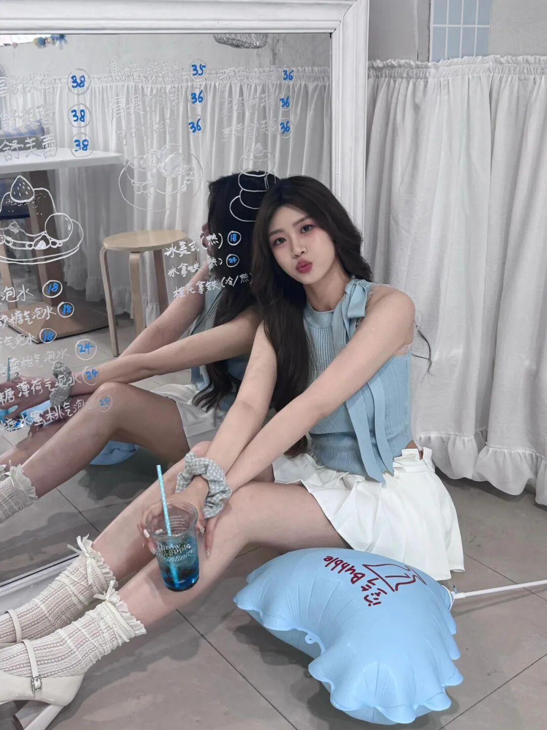 元气少女在“空气泡泡”咖啡馆打卡,清新可爱!💕
